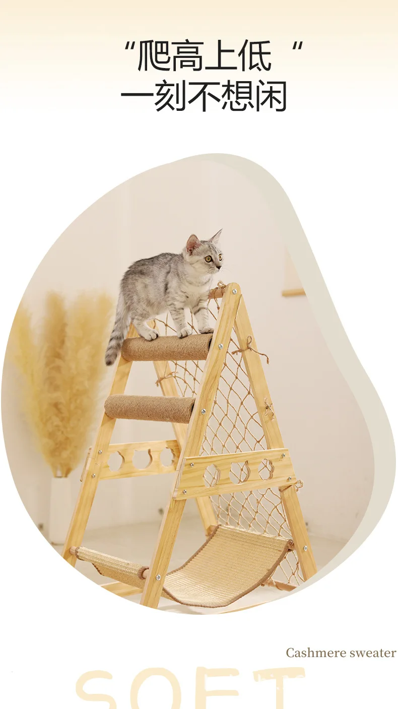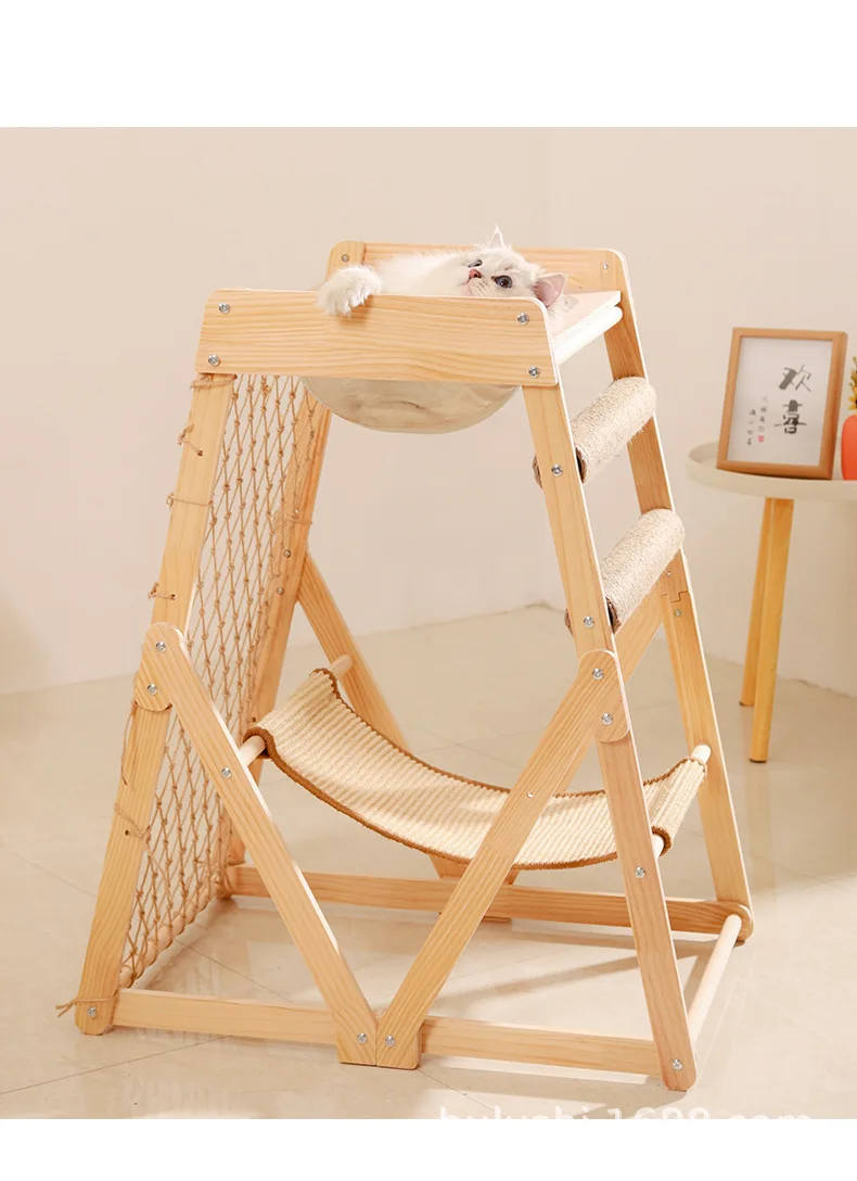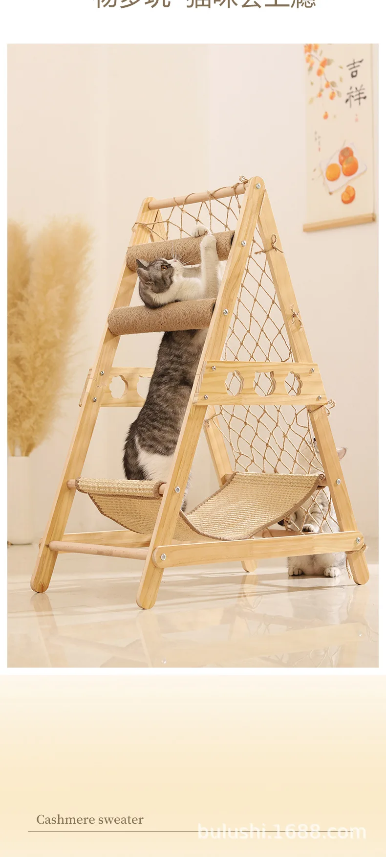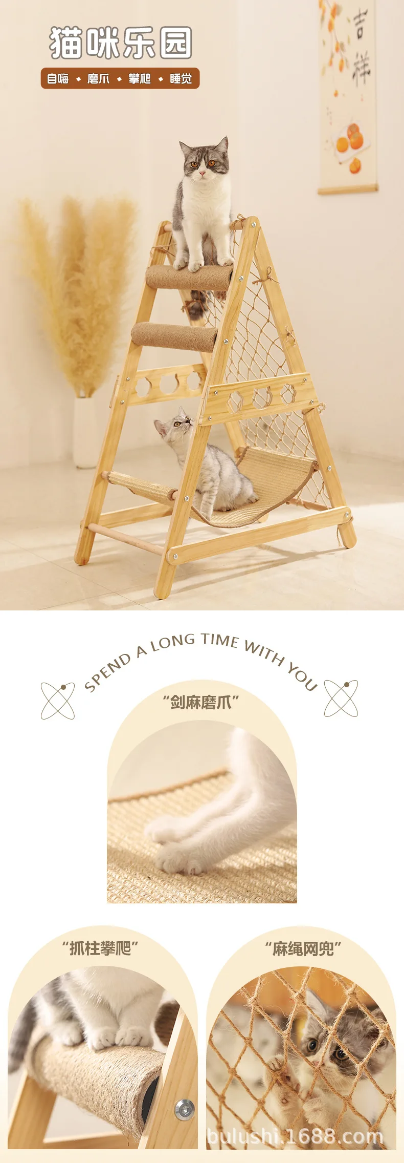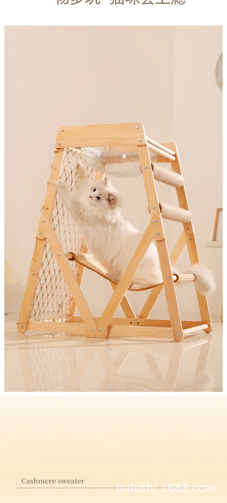 Nueva red de escalada grande, marco de escalada para gatos, nido de madera para mascotas, plataforma para saltar, marco para gatos, varias mascotas, adecuado para jugar y dormir