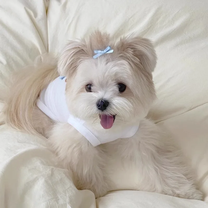 Nueva ropa de algodón suave para perros, chalecos decorativos con lazo y estampado de dibujos animados para gatos, sudadera Unisex de verano, monos para cachorros pequeños