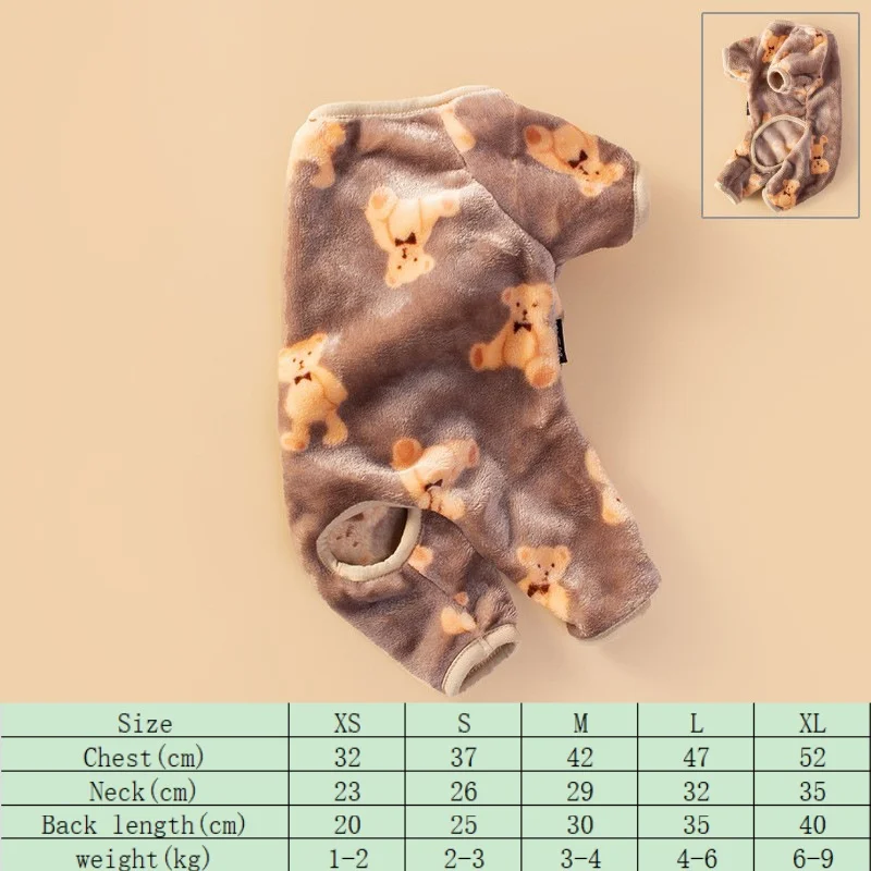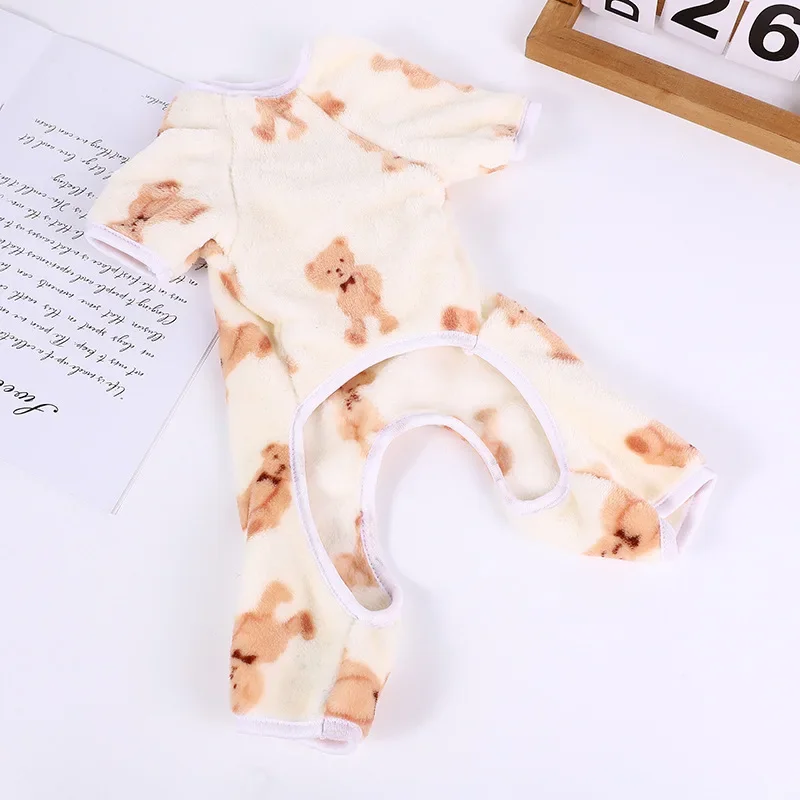 Nueva ropa para cachorros, pelele con capucha con estampado de oso, bonito traje para mascotas, ropa para perros y gatos de cuatro patas, conjunto de franela