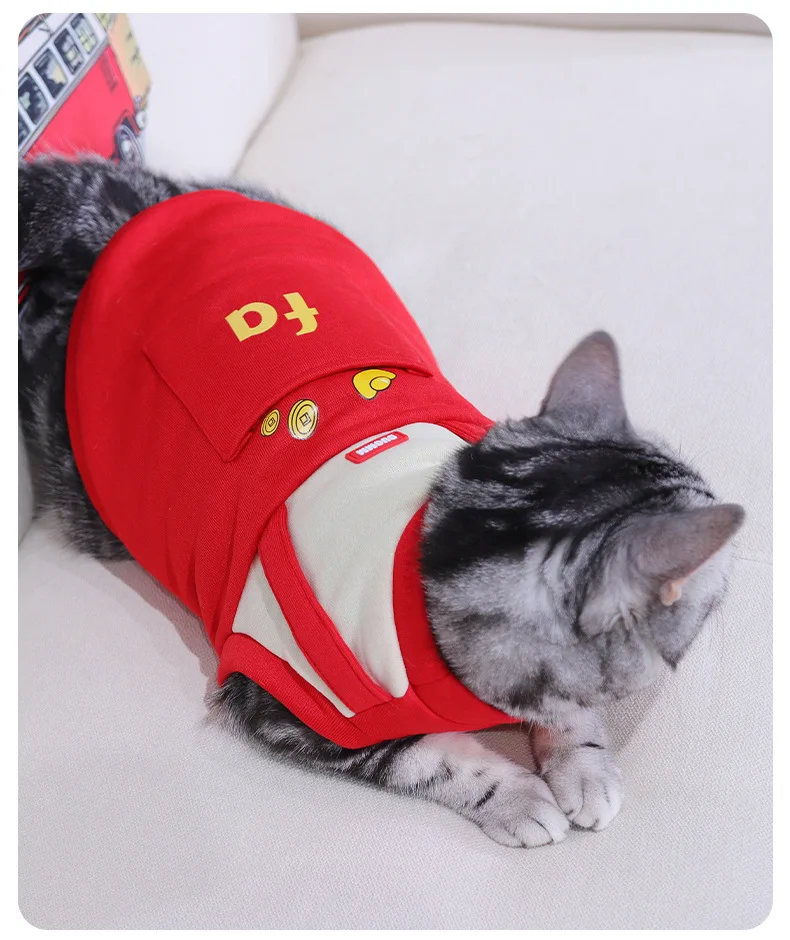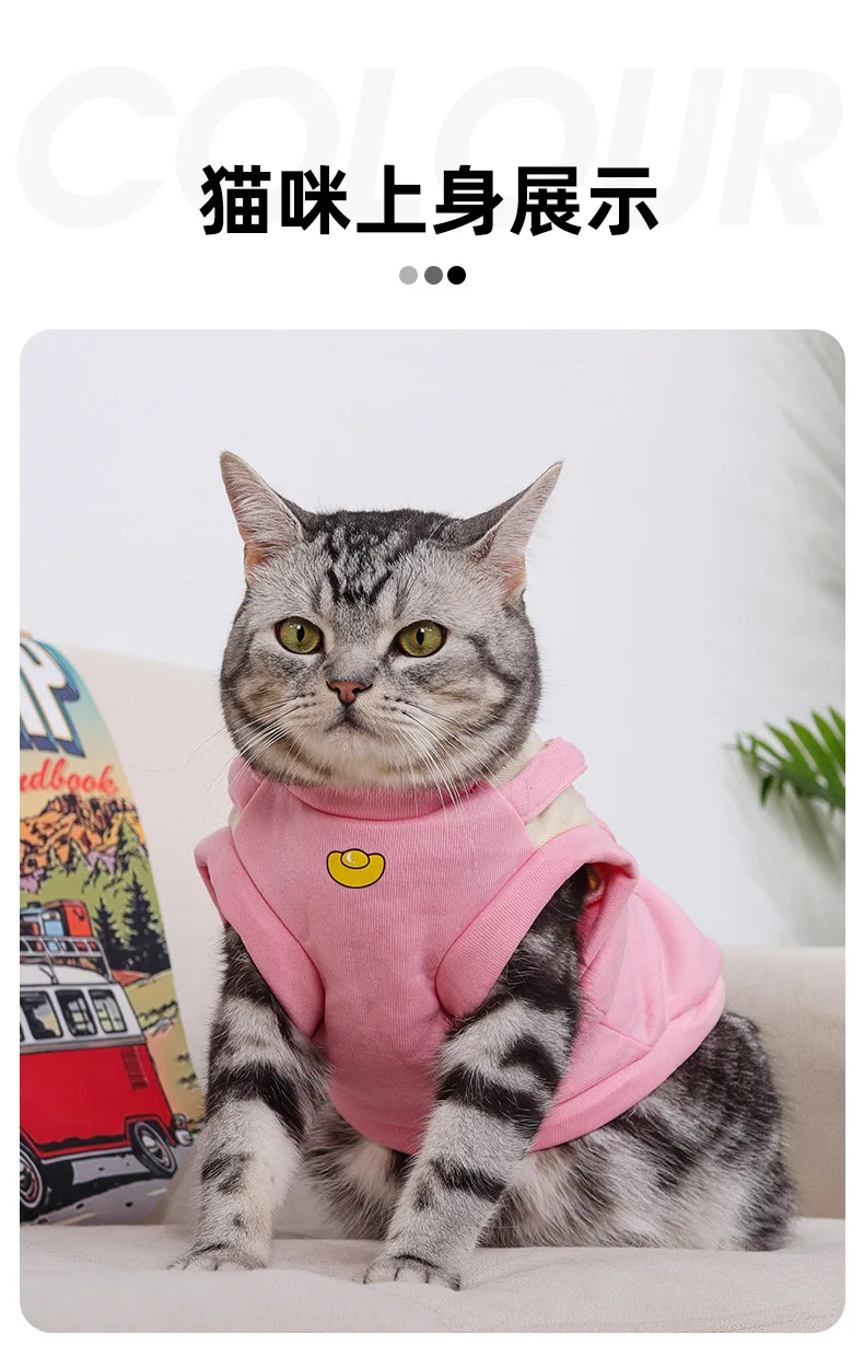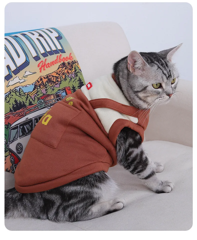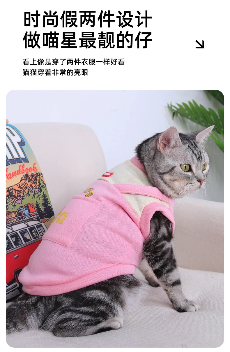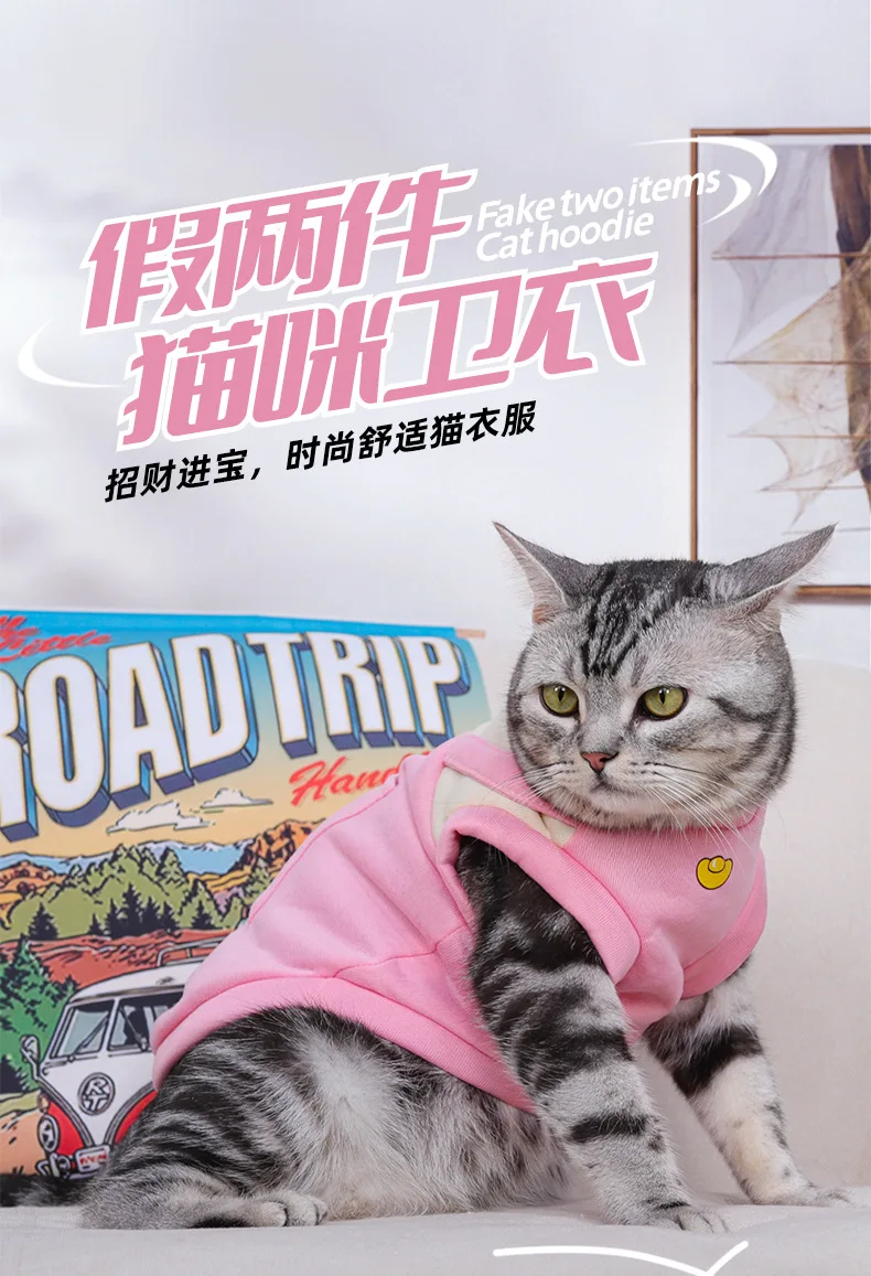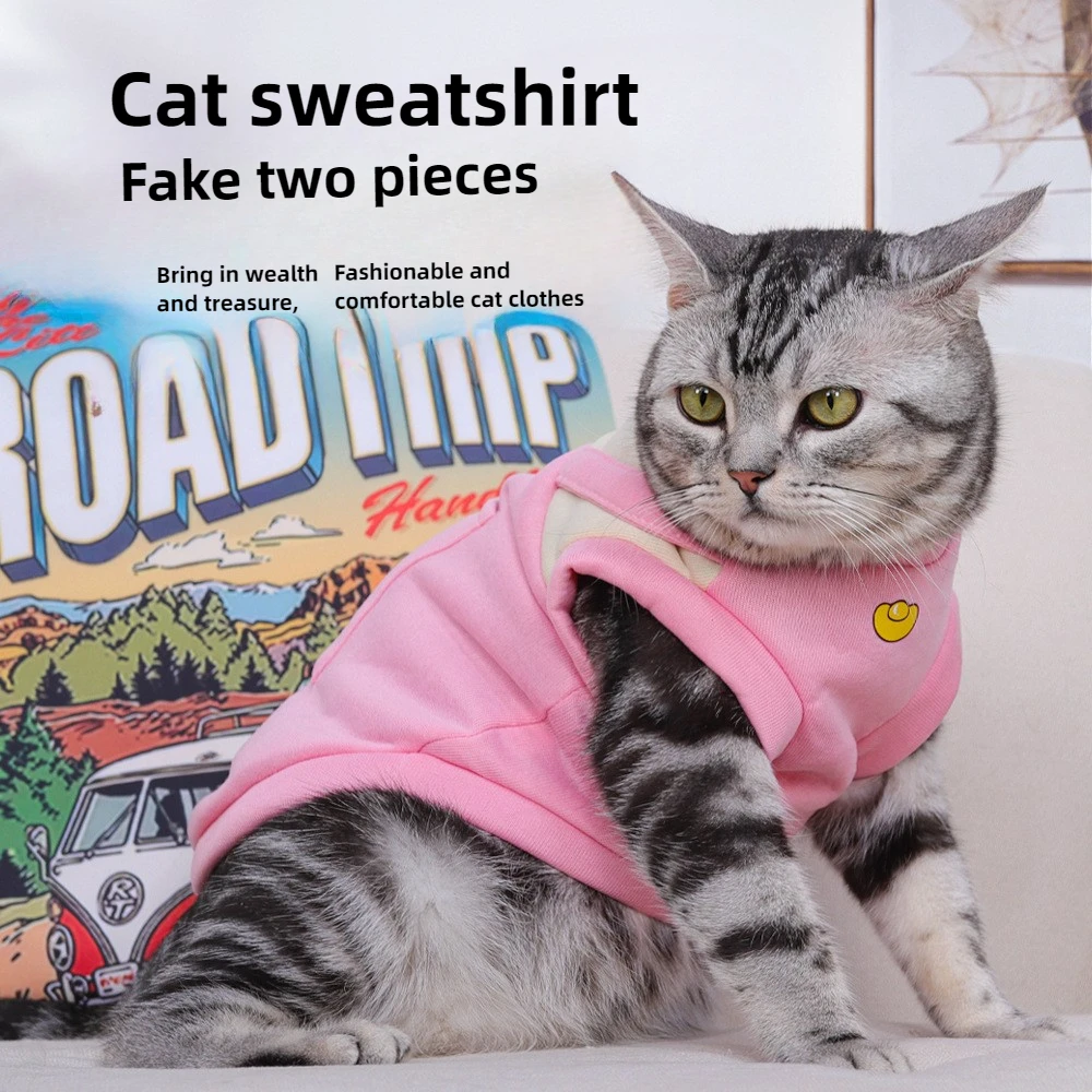 Nueva ropa para gatos, ropa falsa de dos piezas con estampado de dibujos animados para gatos, suéter cálido a prueba de viento para otoño e invierno, ropa para mascotas