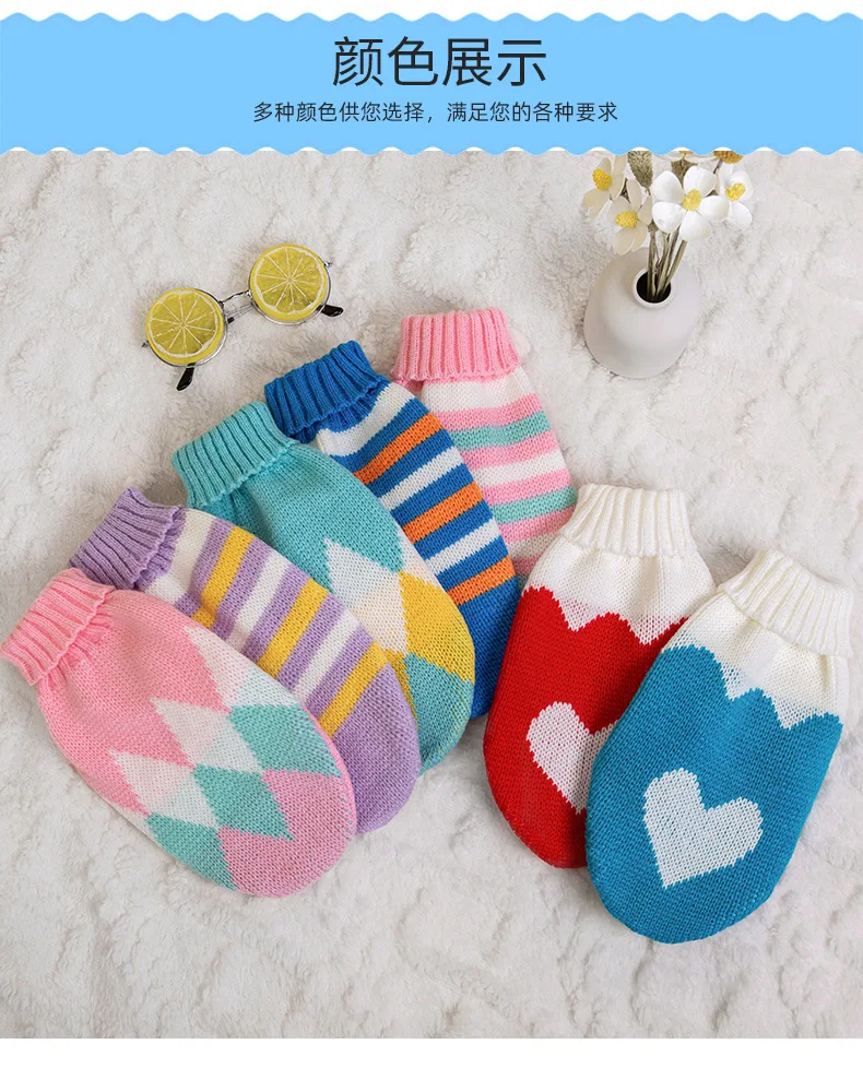 Nueva ropa para mascotas primavera Otoño e Invierno ropa tejida de lana multicolor para perros ropa Casual cálida para ambos pies