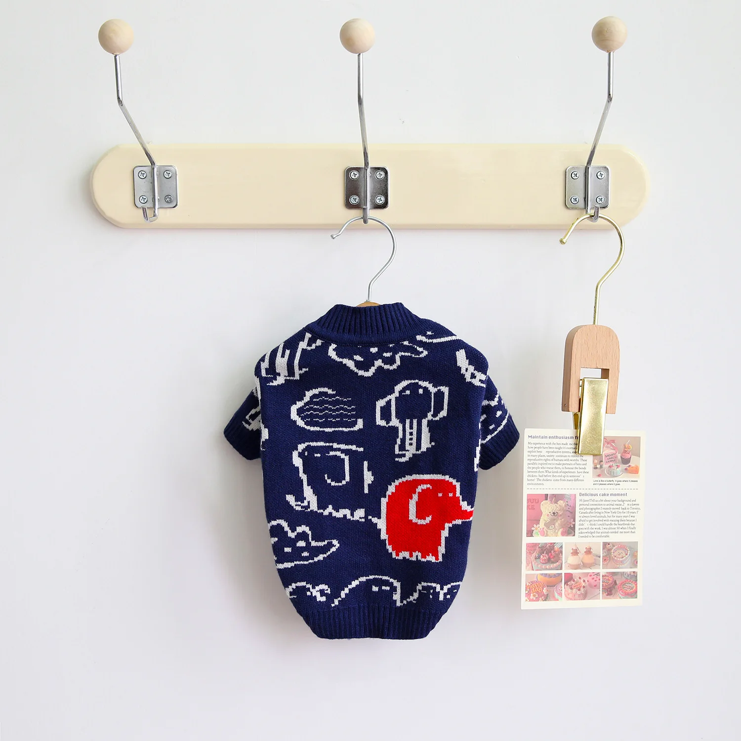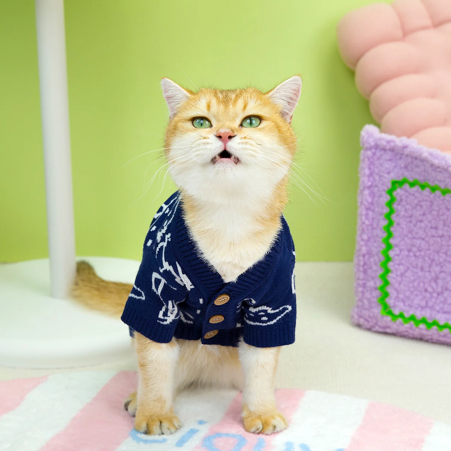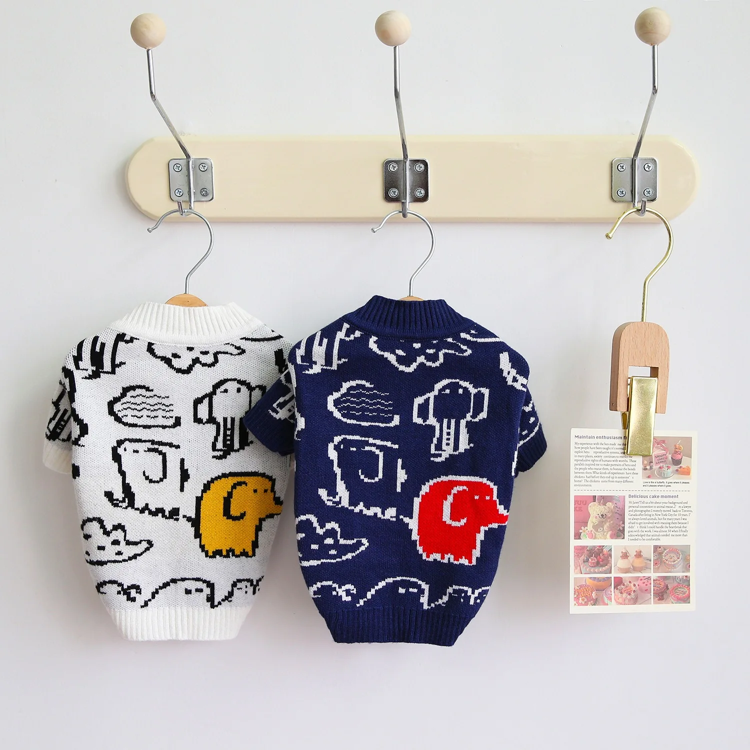 Nueva ropa de otoño e invierno para mascotas, suéter de gato con elefante de dibujos animados, suéter con gradiente dorado, ropa antipérdida de cabello con botones para mascotas