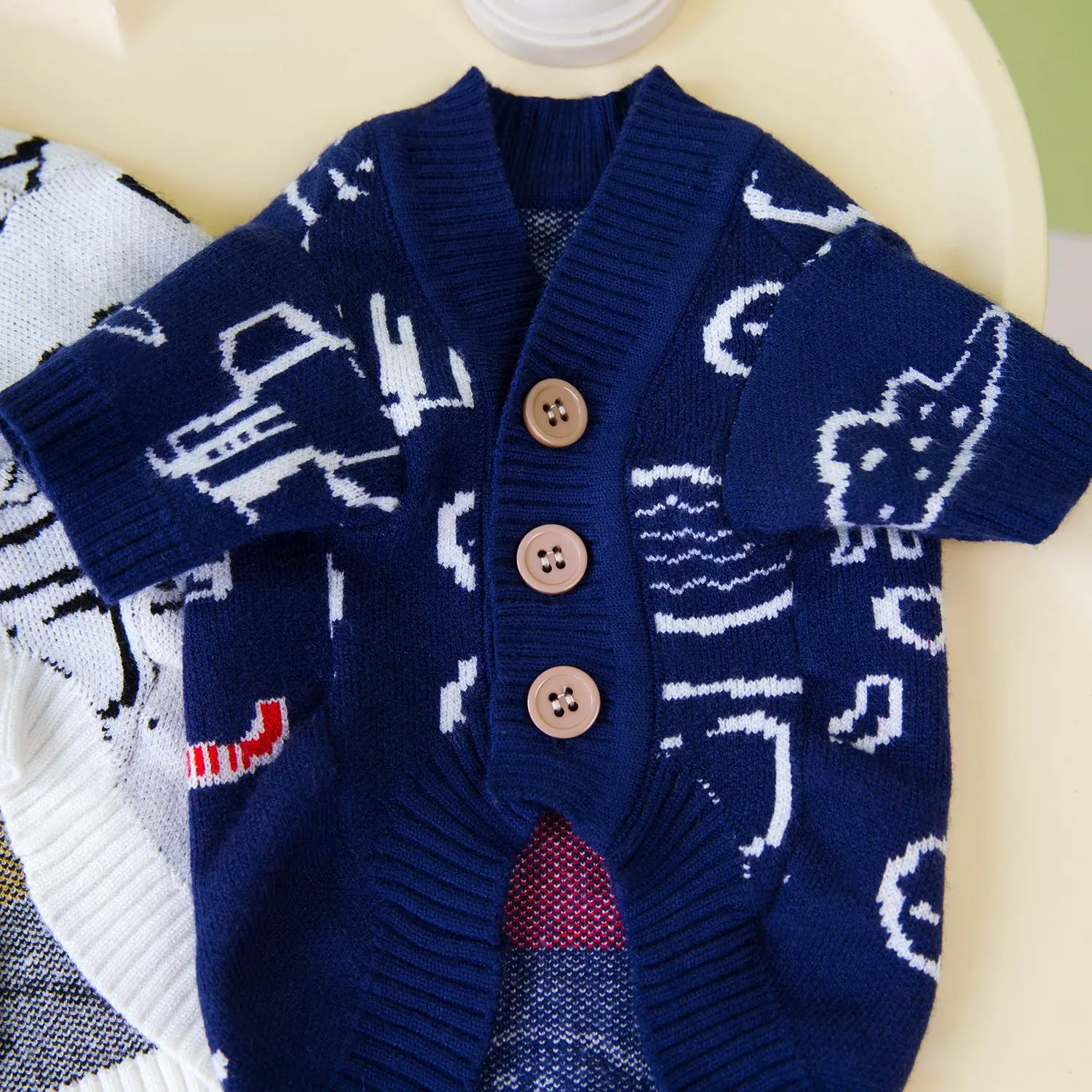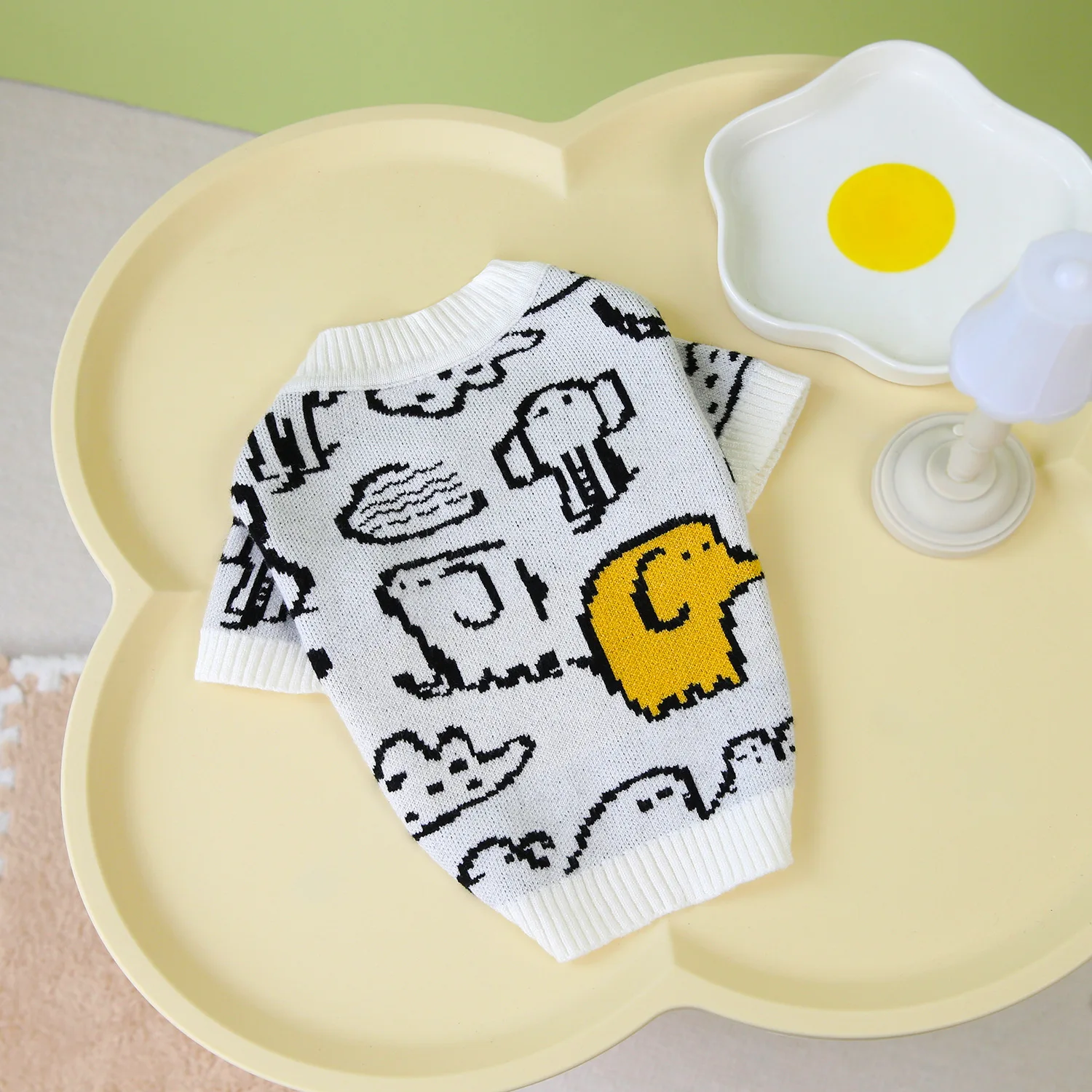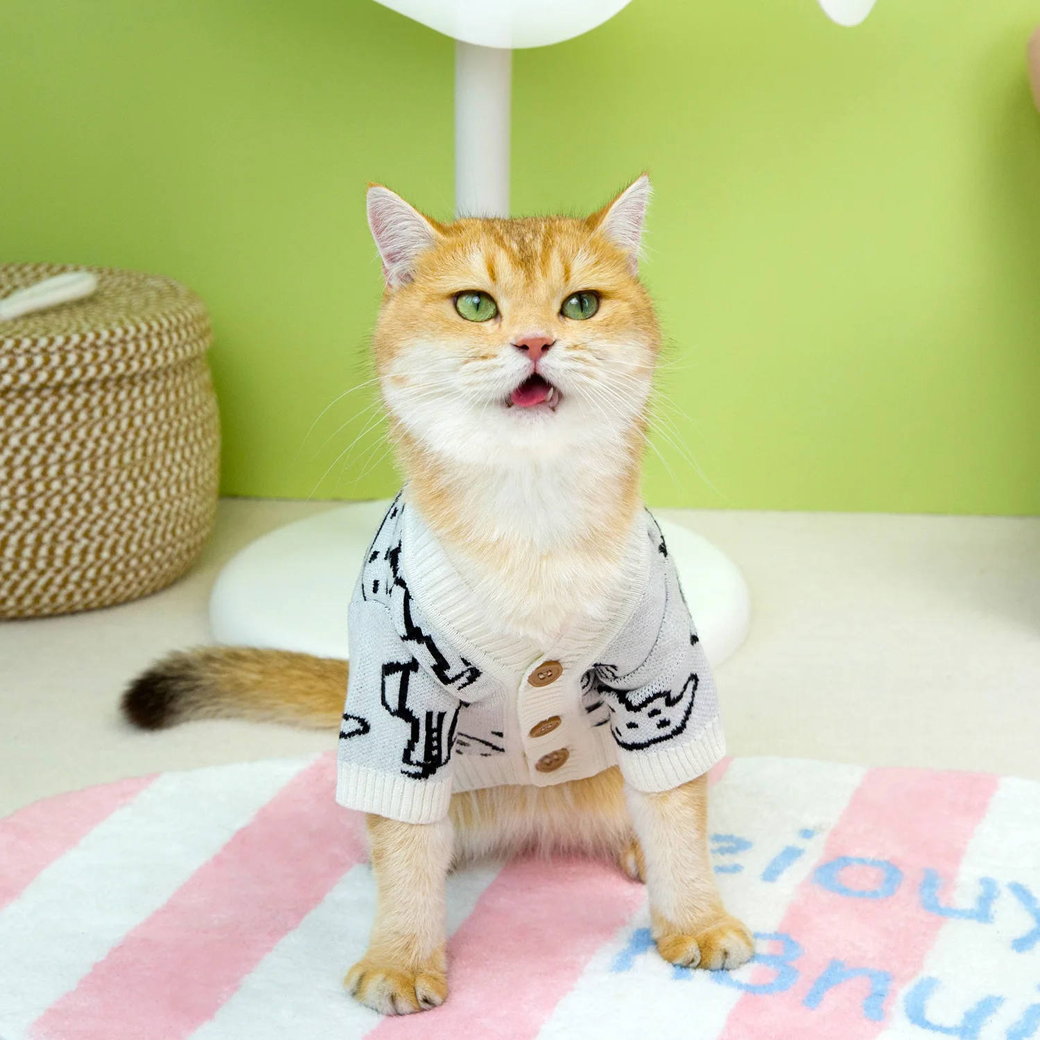 Nueva ropa de otoño e invierno para mascotas, suéter de gato con elefante de dibujos animados, suéter con gradiente dorado, ropa antipérdida de cabello con botones para mascotas