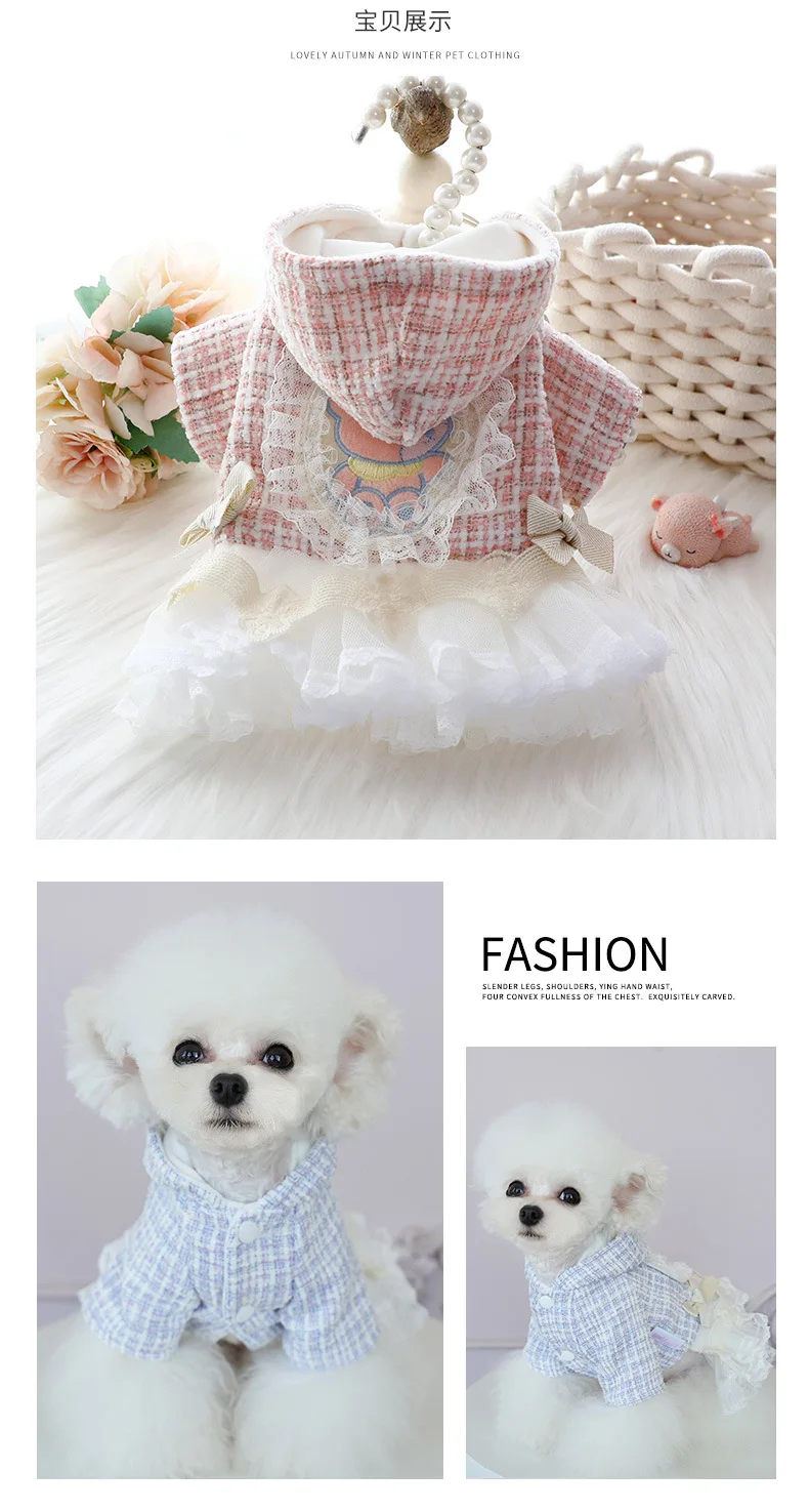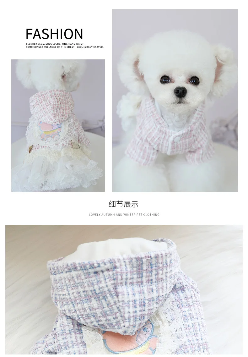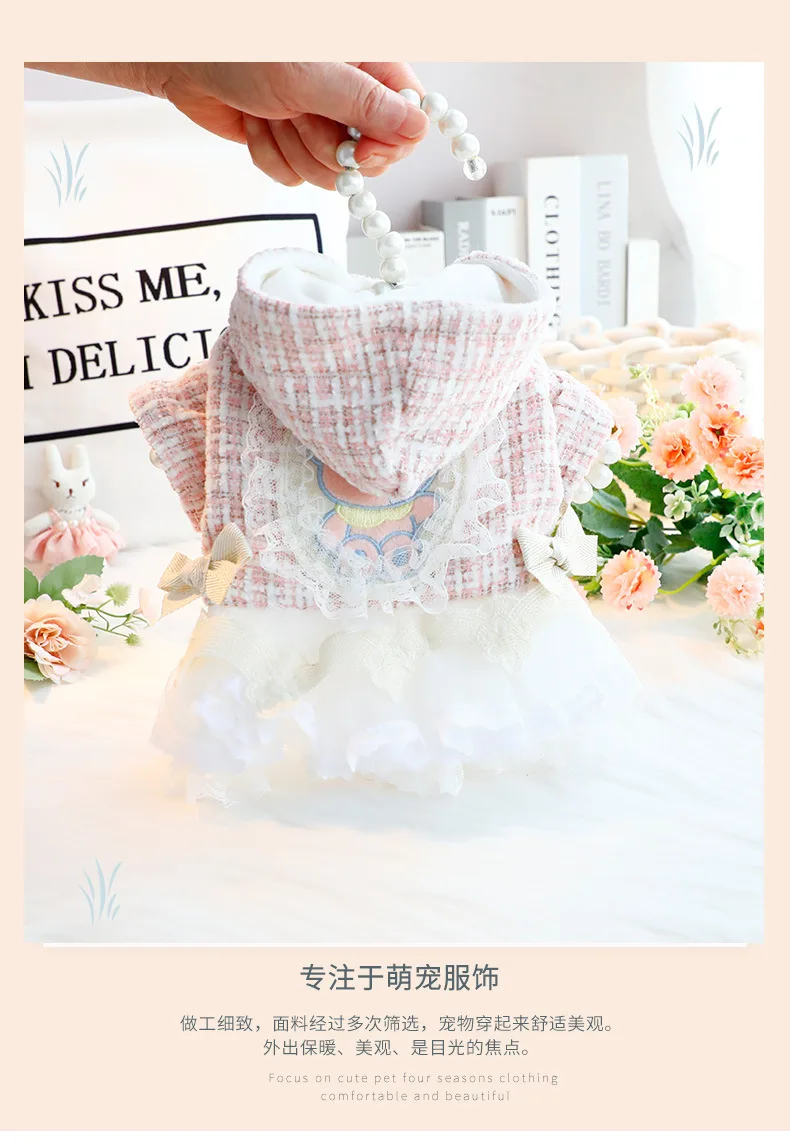 Nueva ropa de otoño e invierno para mascotas, vestido clásico de princesa con adorno de encaje y sombrero para perros y gatos pequeños