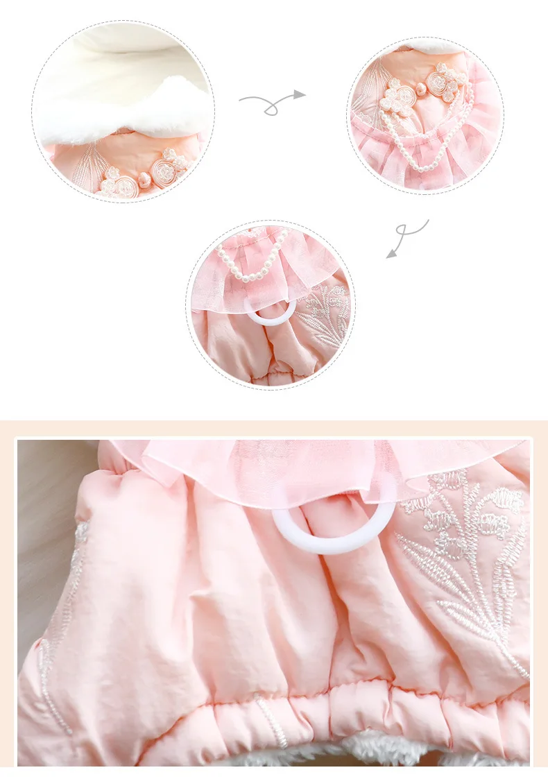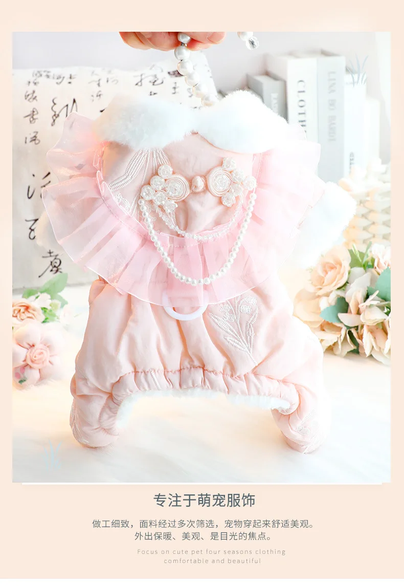 Nueva ropa de Otoño Invierno para perros, abrigo de algodón grueso y cálido para perros con cuello de piel sintética, ropa de princesa para perros pequeños