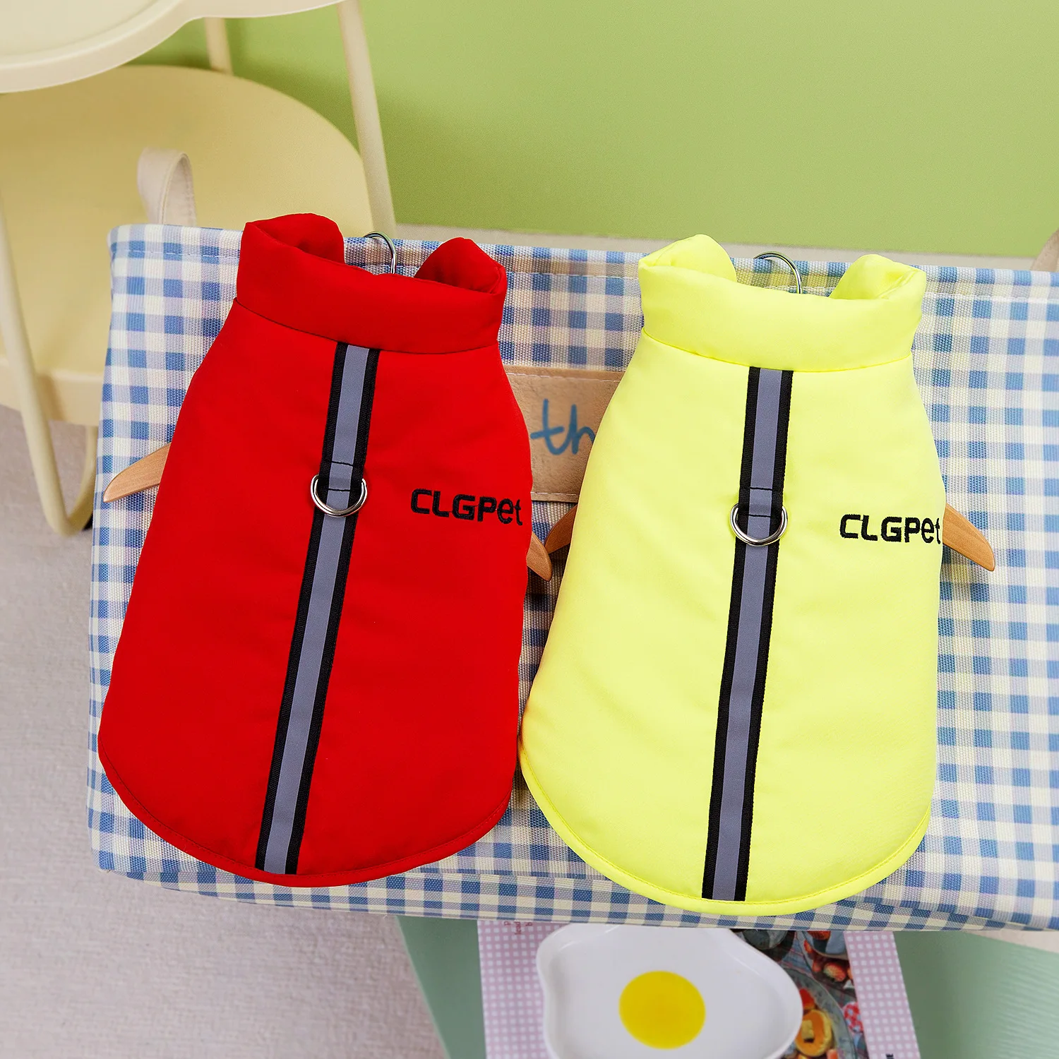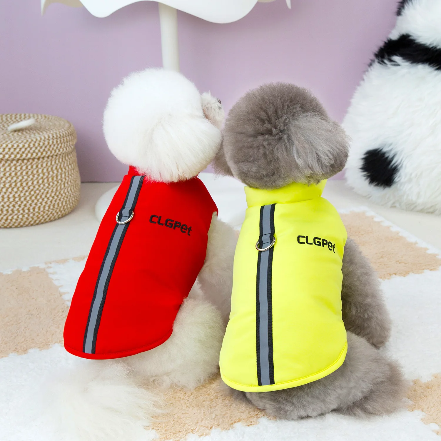 Nueva ropa para perros de otoño e invierno, se puede remolcar, ropa acolchada de algodón para mascotas de Color sólido, tiras reflectantes, ropa de terciopelo para perros y mascotas