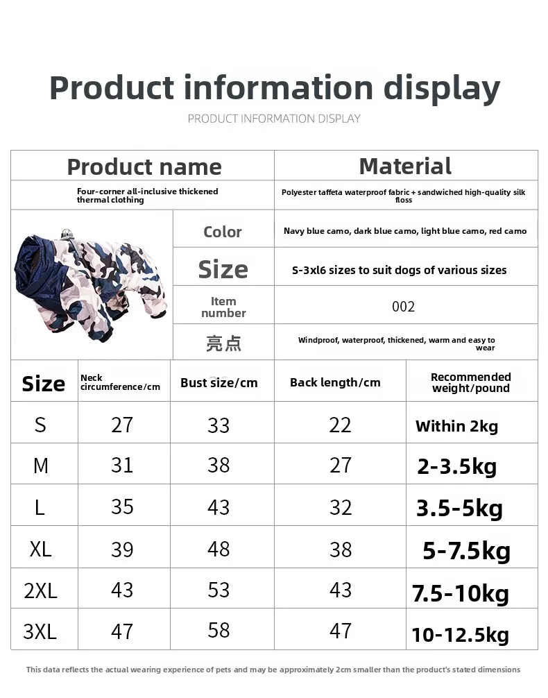 Nueva ropa para perros, Otoño e Invierno, ropa impermeable para cachorros pequeños y medianos, ropa para perros de cuatro patas, Chaqueta de algodón, productos para mascotas