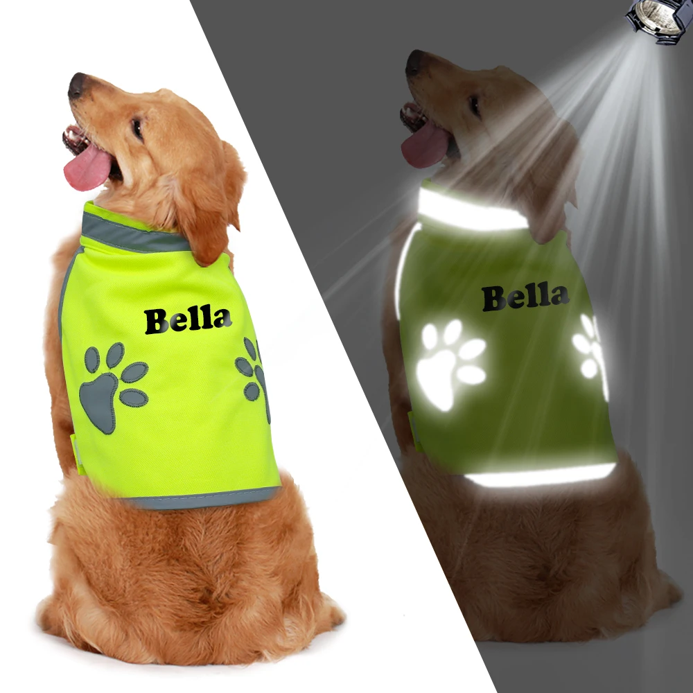 Nueva ropa personalizada para perros, chaleco reflectante para perros, ropa con nombre de mascota impresa con personalidad, chalecos para caminar de noche de alta visibilidad para perros