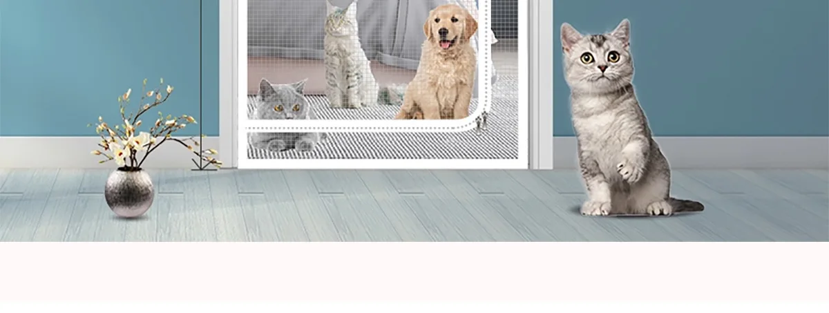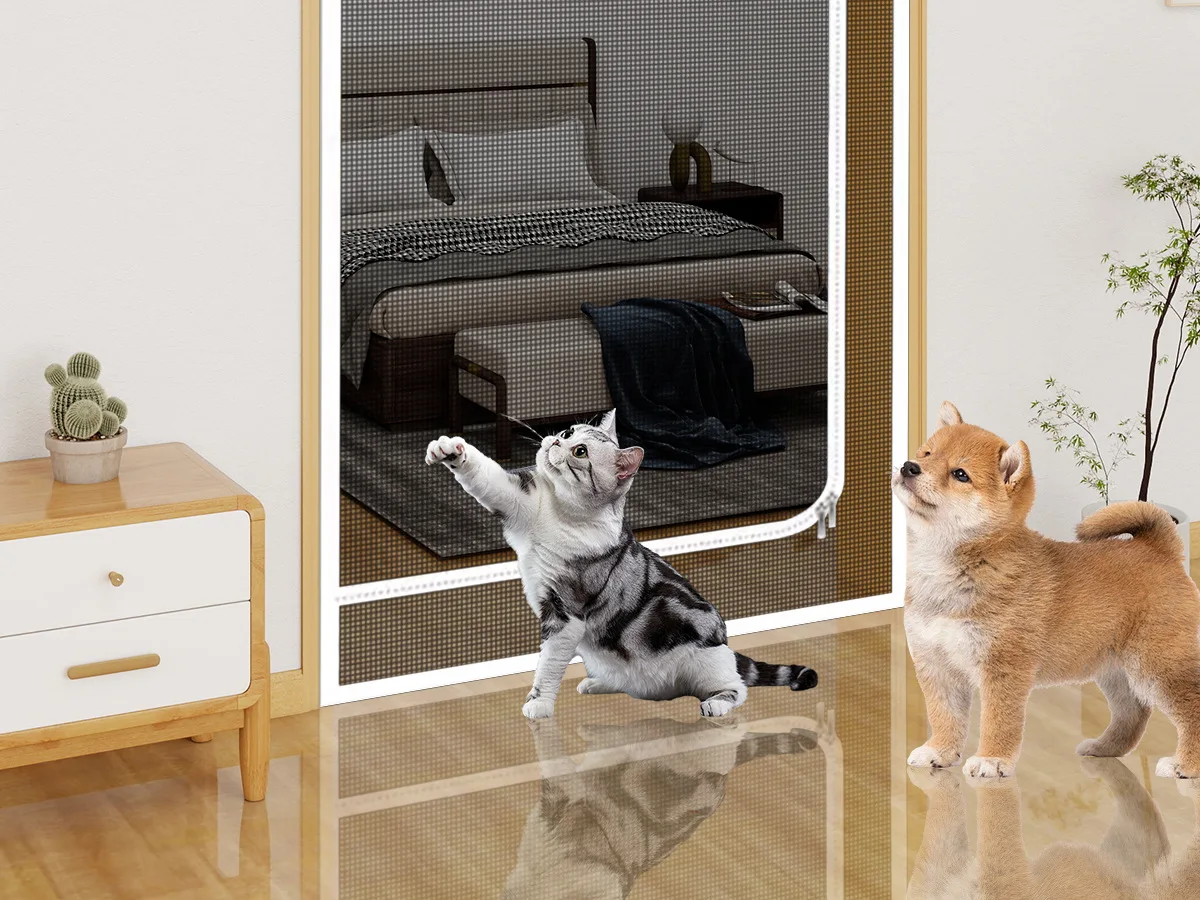 Nueva valla de puerta de aislamiento específica para mascotas de malla de plástico 304, evita que los gatos entre en el dormitorio, puerta con pantalla de malla de diamante con cremallera