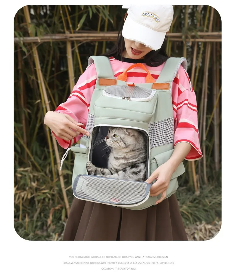Nuevas bolsas de doble hombro para gatos, bolsa para salir, bolsa portátil de gran capacidad para mascotas, mochila Visual transpirable para gatos, mochila para perros