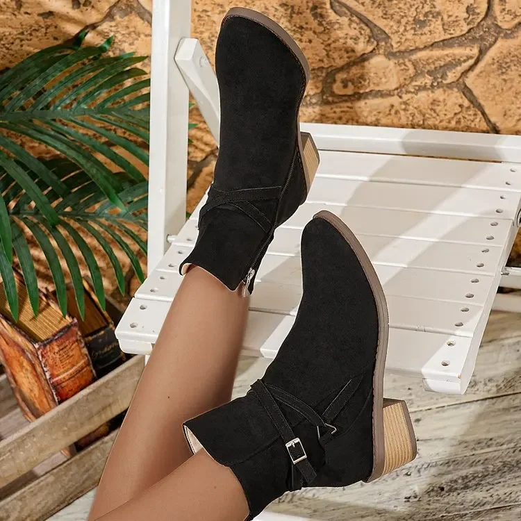 Nuevas botas de punta redonda para mujer, cómodas, ligeras, a la moda, botas poco profundas, botas informales de otoño e invierno, zapatos de exterior para mujer