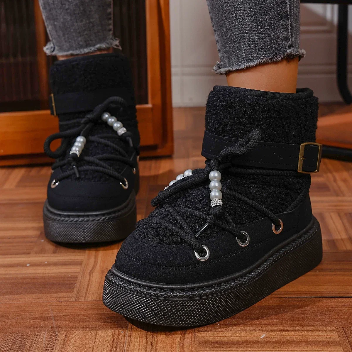 Nuevas botas de trabajo cálidas, elegantes y sexis a la moda, botas de nieve informales antideslizantes con punta redonda y suela gruesa cómodas para mujer