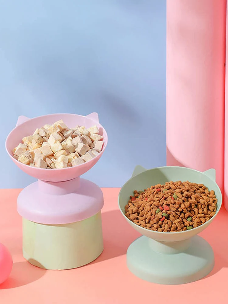 Nuevas ventas de cuencos para pies altos, protector para el cuello del gatito, previene firmemente el malestar, cuenco de plástico, comida para gatos de color caramelo para cuencos de comida para perros