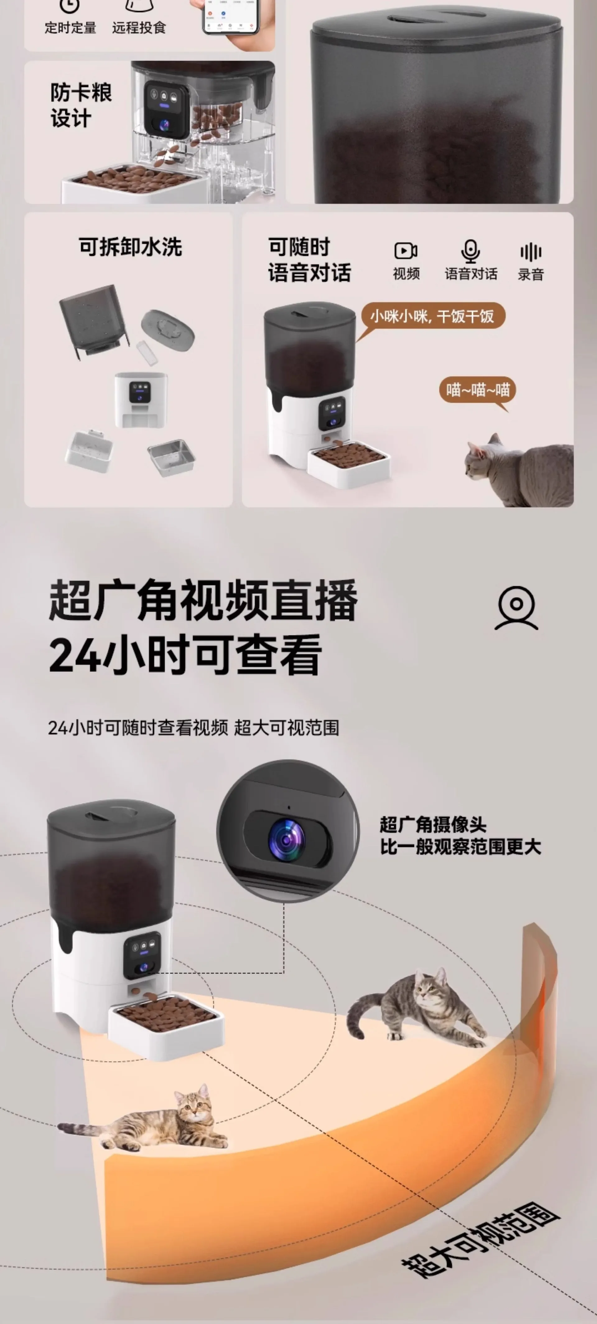 Nuevo Alimentador inteligente para mascotas, alimentador de vídeo gran angular, conexión Bluetooth, entrega automática de alimentos para perros y gatos