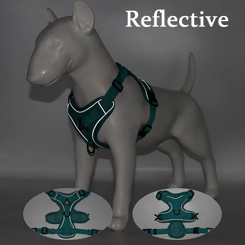 Más diseño de seguridad.Hilos reflectantes en todo el arnés para garantizar una gran visibilidad por la noche.Incluso una fuente de luz tenue, también puedes asegurarte de caminar con seguridad gracias a las tiras reflectantes súper brillantes.