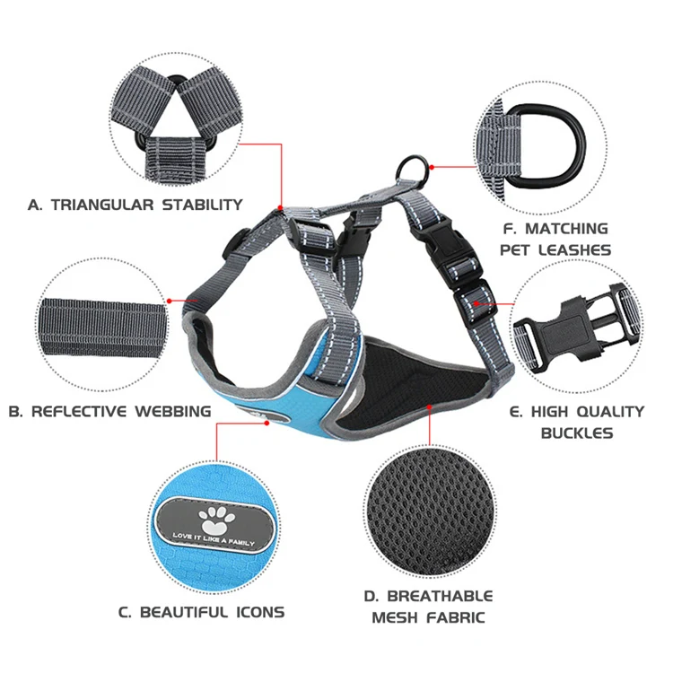 Nuevo arnés para perros, chaleco reflectante, transpirable, arneses para mascotas, sin tirones, impermeable, para entrenamiento al aire libre, correa para el pecho para perros medianos y grandes