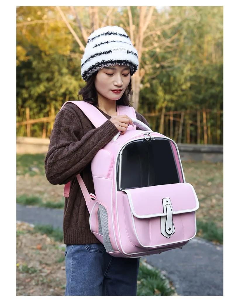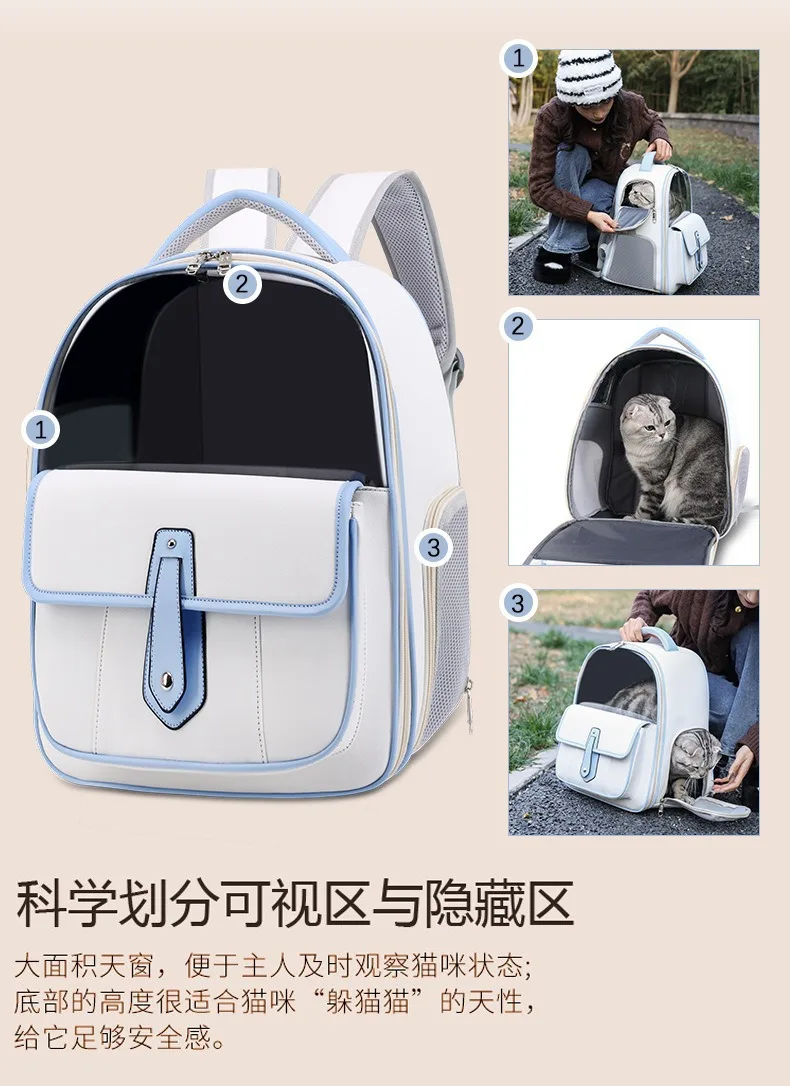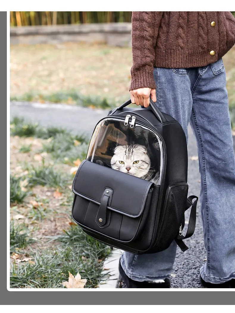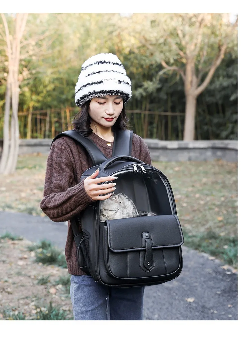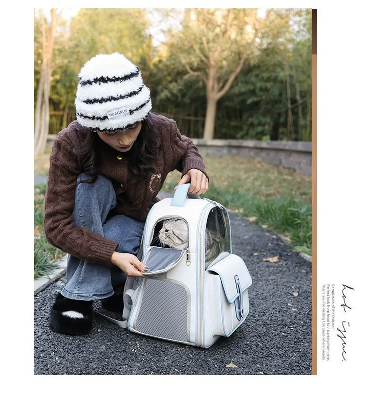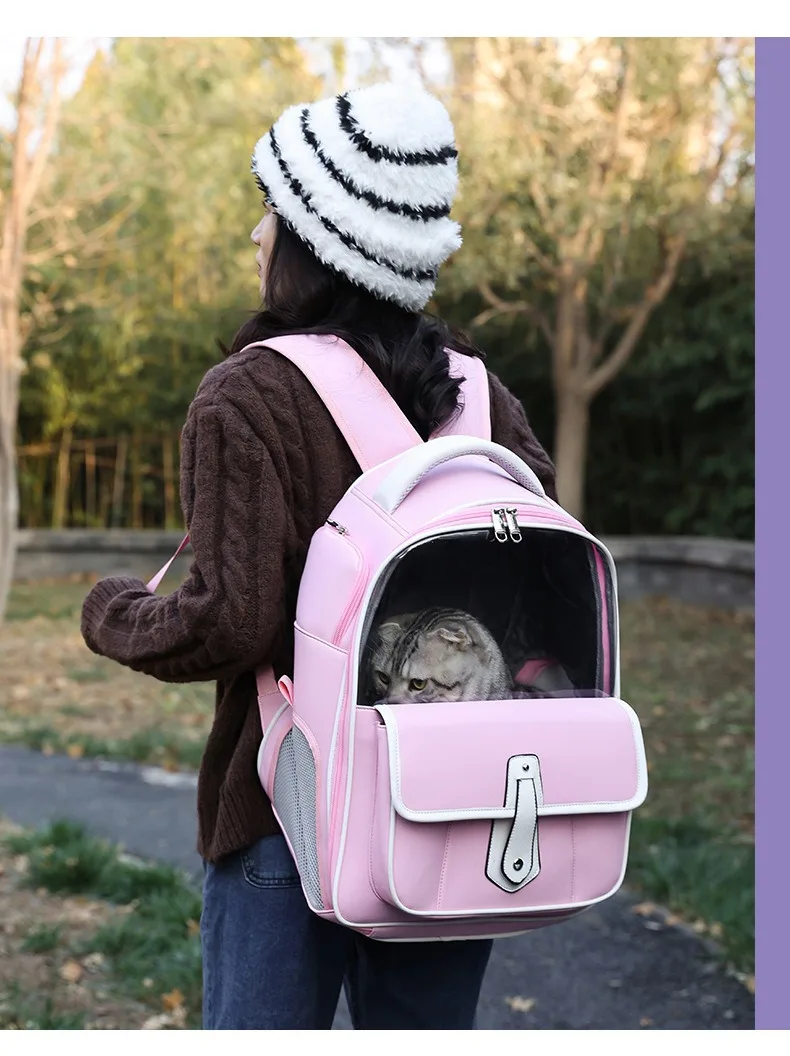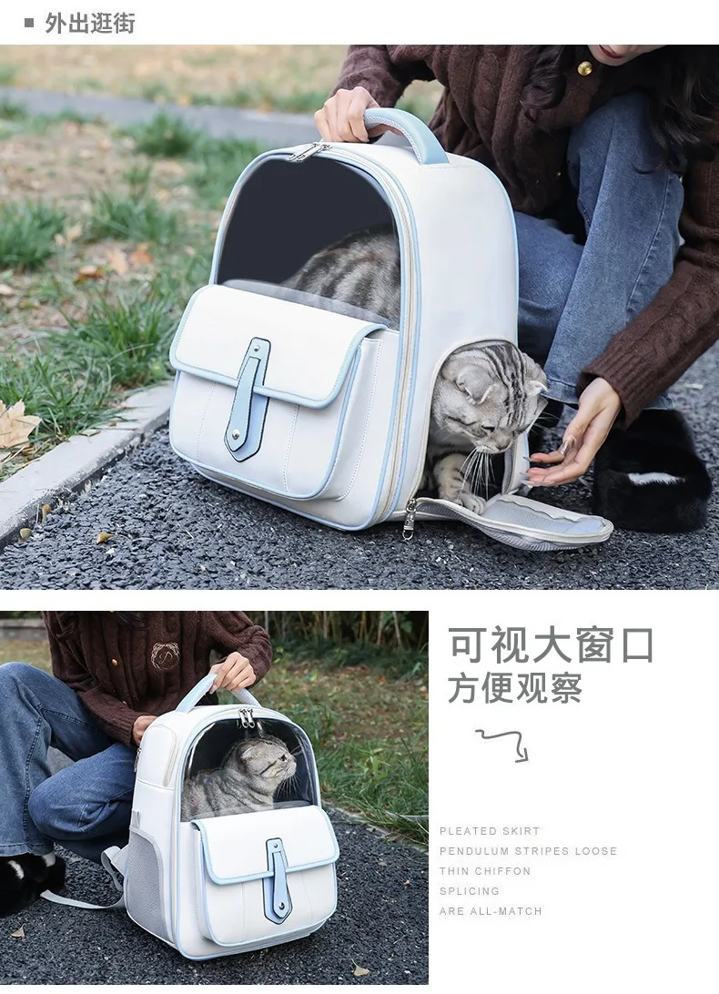 Nuevo Bolsa versátil para gatos, bolsa cuadrada plegable de PU para salir de mascotas, mochila de viaje para gatos de gran capacidad