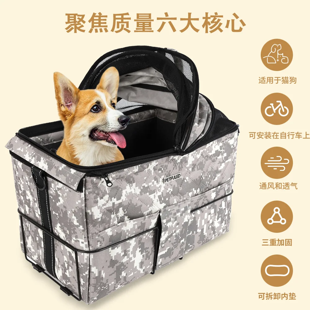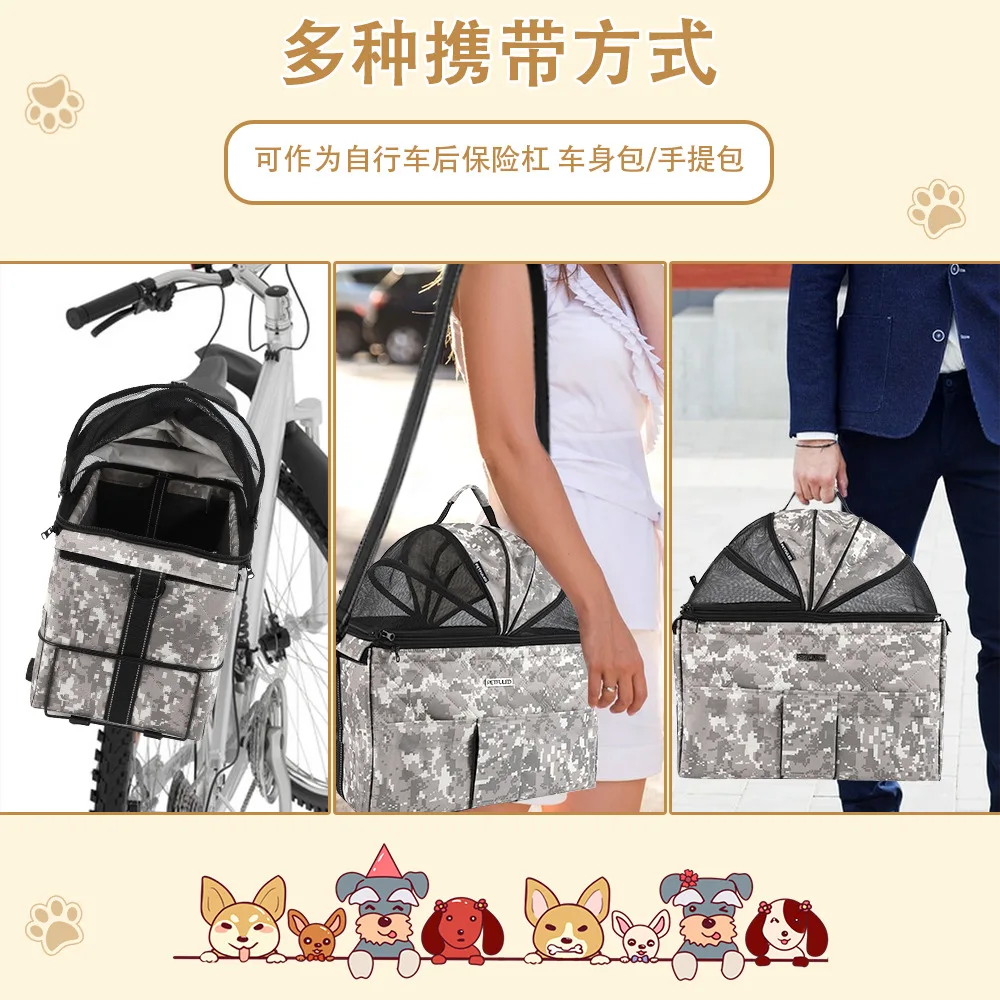 Nuevo bolso de asiento trasero de bicicleta para mascotas, bolso de hombro portátil para coche al aire libre, suministros para perros y gatos extraíbles portátiles para mascotas