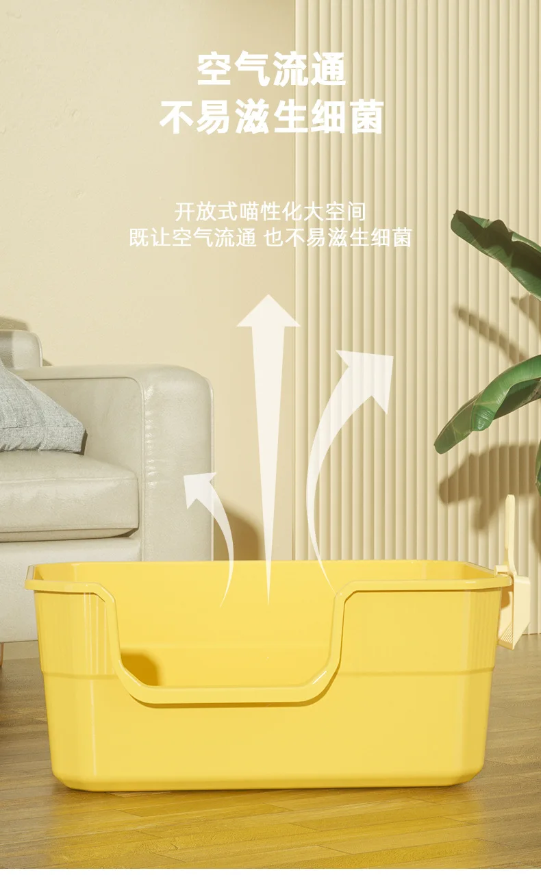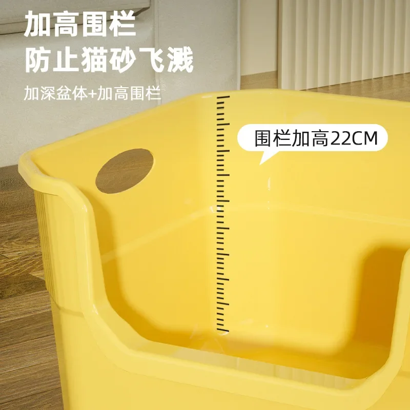 Nuevo Caja de arena grande para gatos, valla elevada integrada, inodoro antisalpicaduras para mascotas con pala para arena para gatos