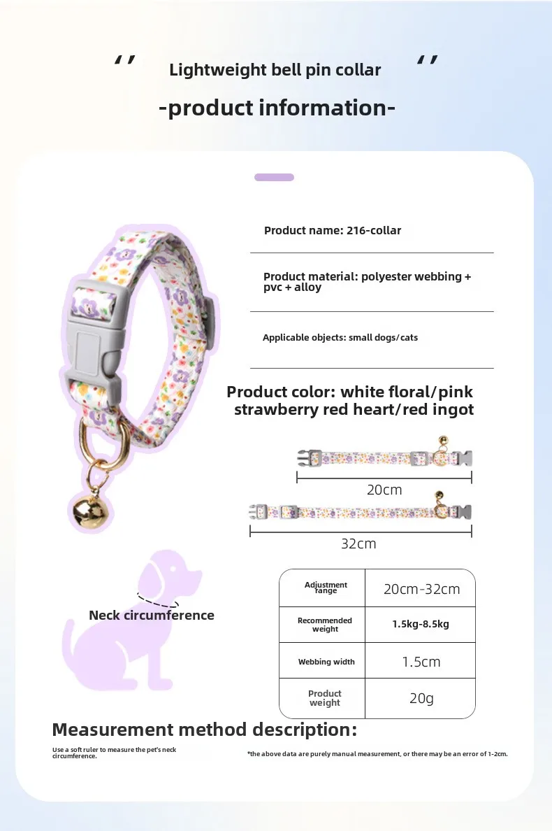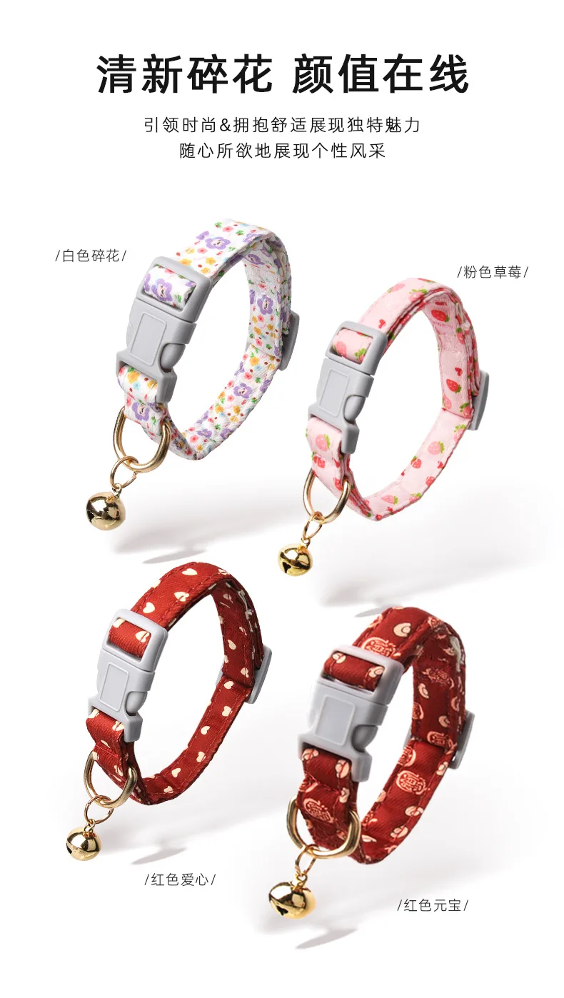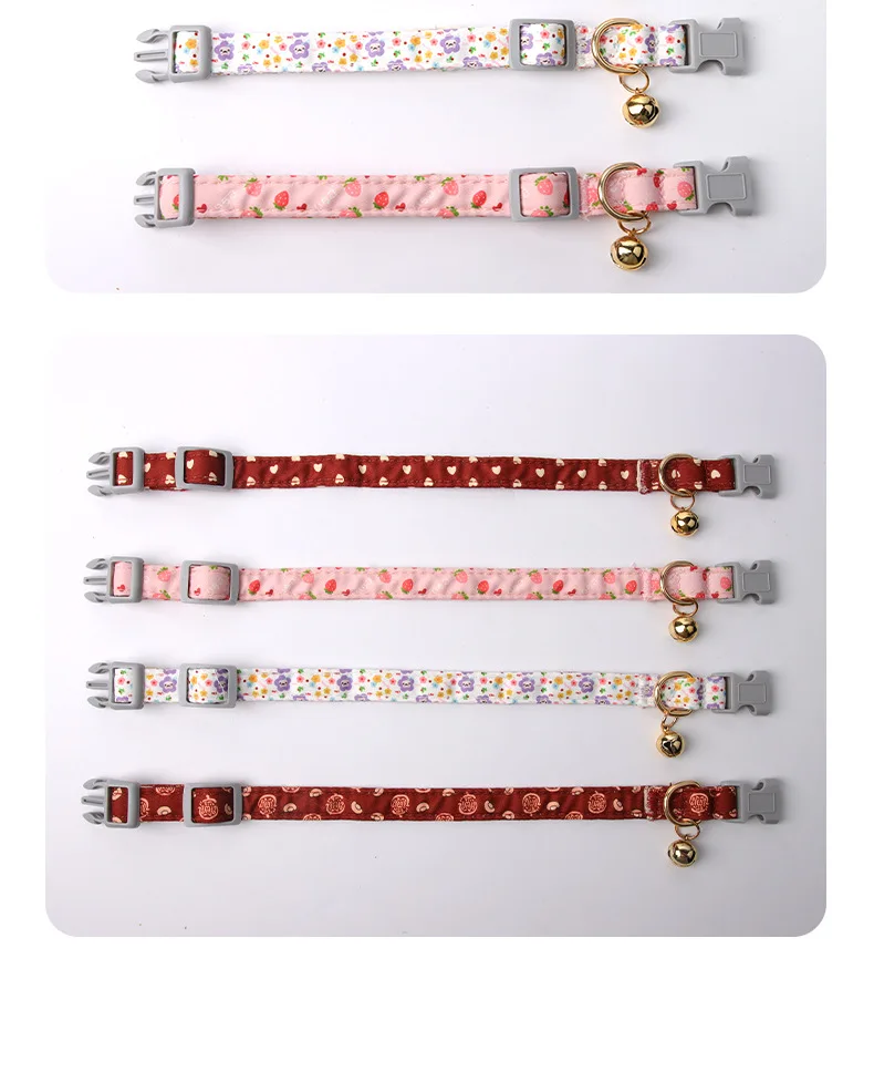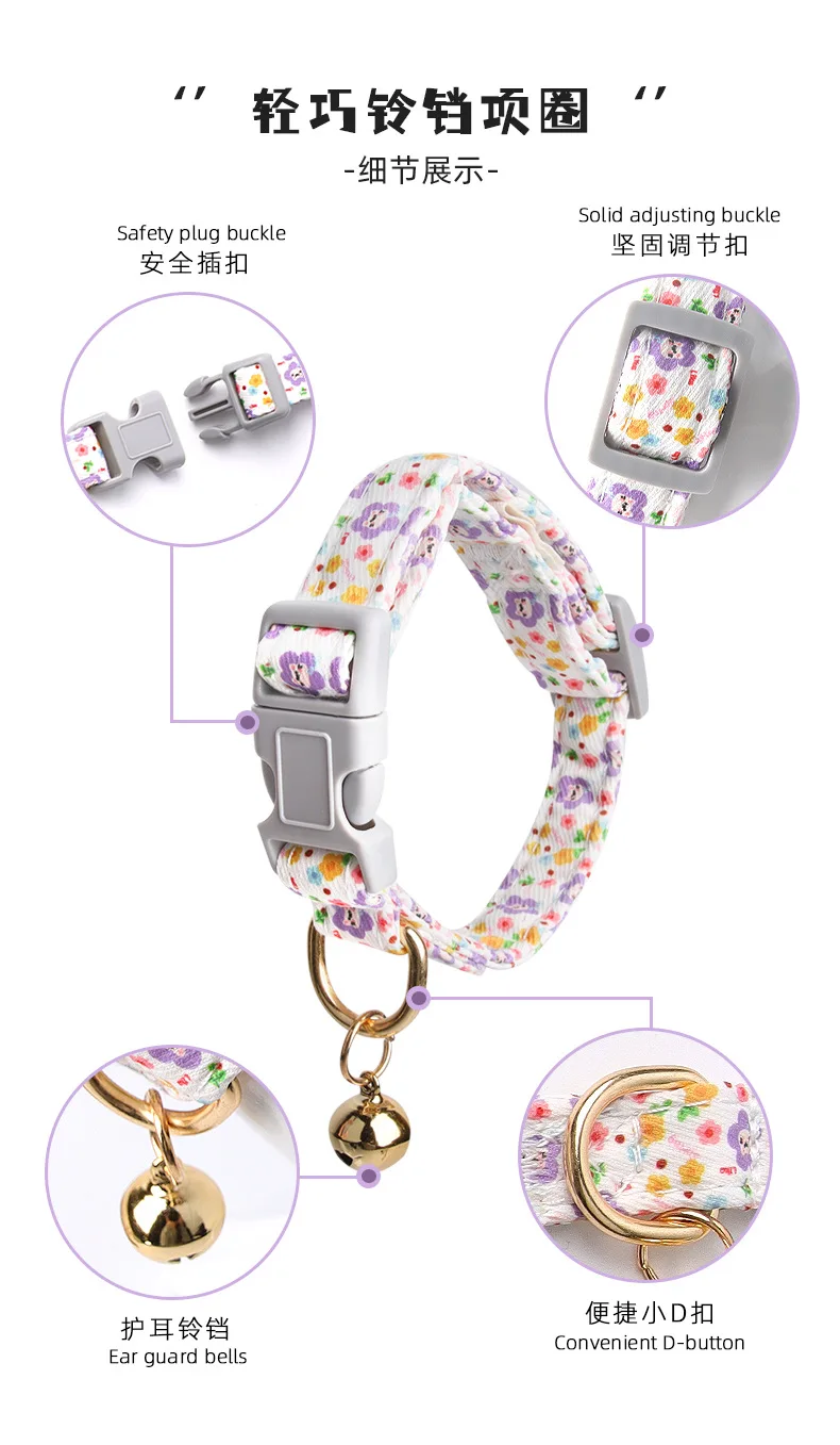 Nuevo Collar para mascotas pequeño estampado Floral pequeño campana coreana Anti-pérdida lindo Collar de gato