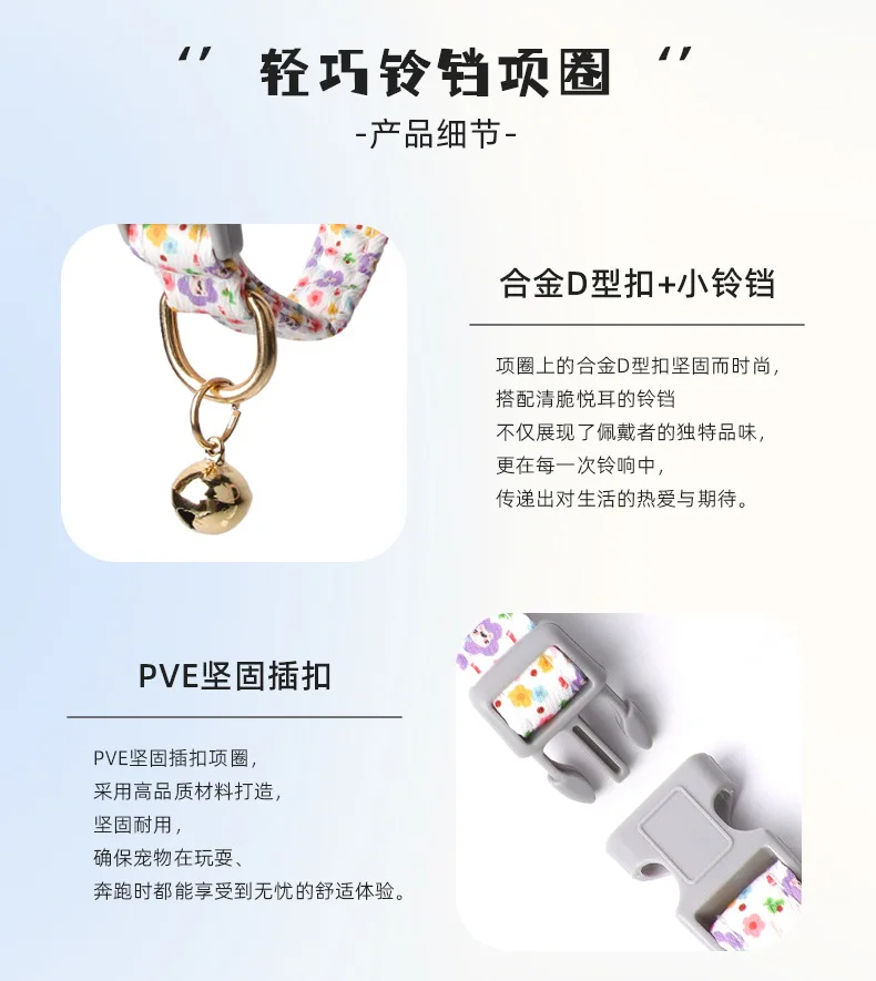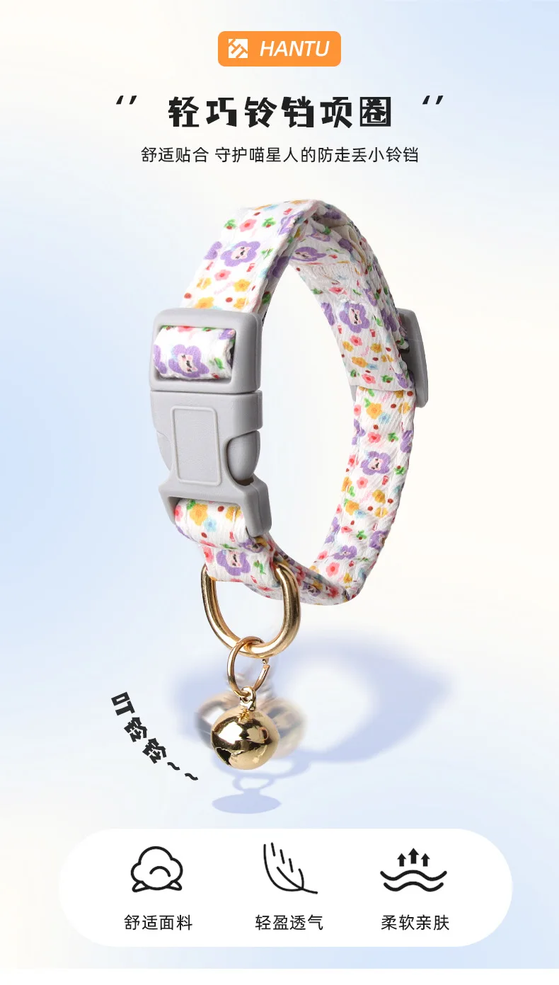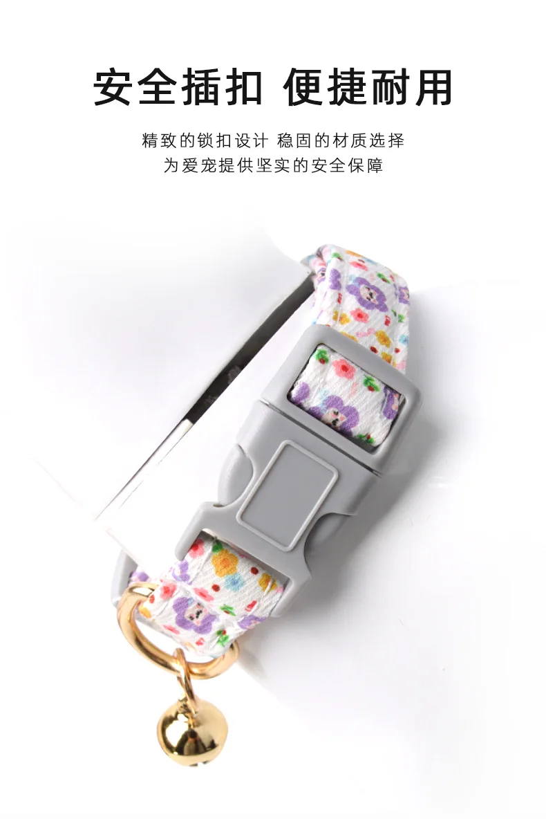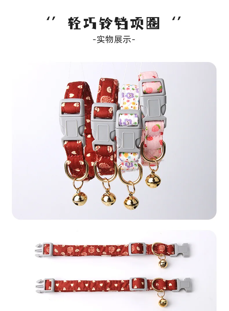 Nuevo Collar para mascotas pequeño estampado Floral pequeño campana coreana Anti-pérdida lindo Collar de gato