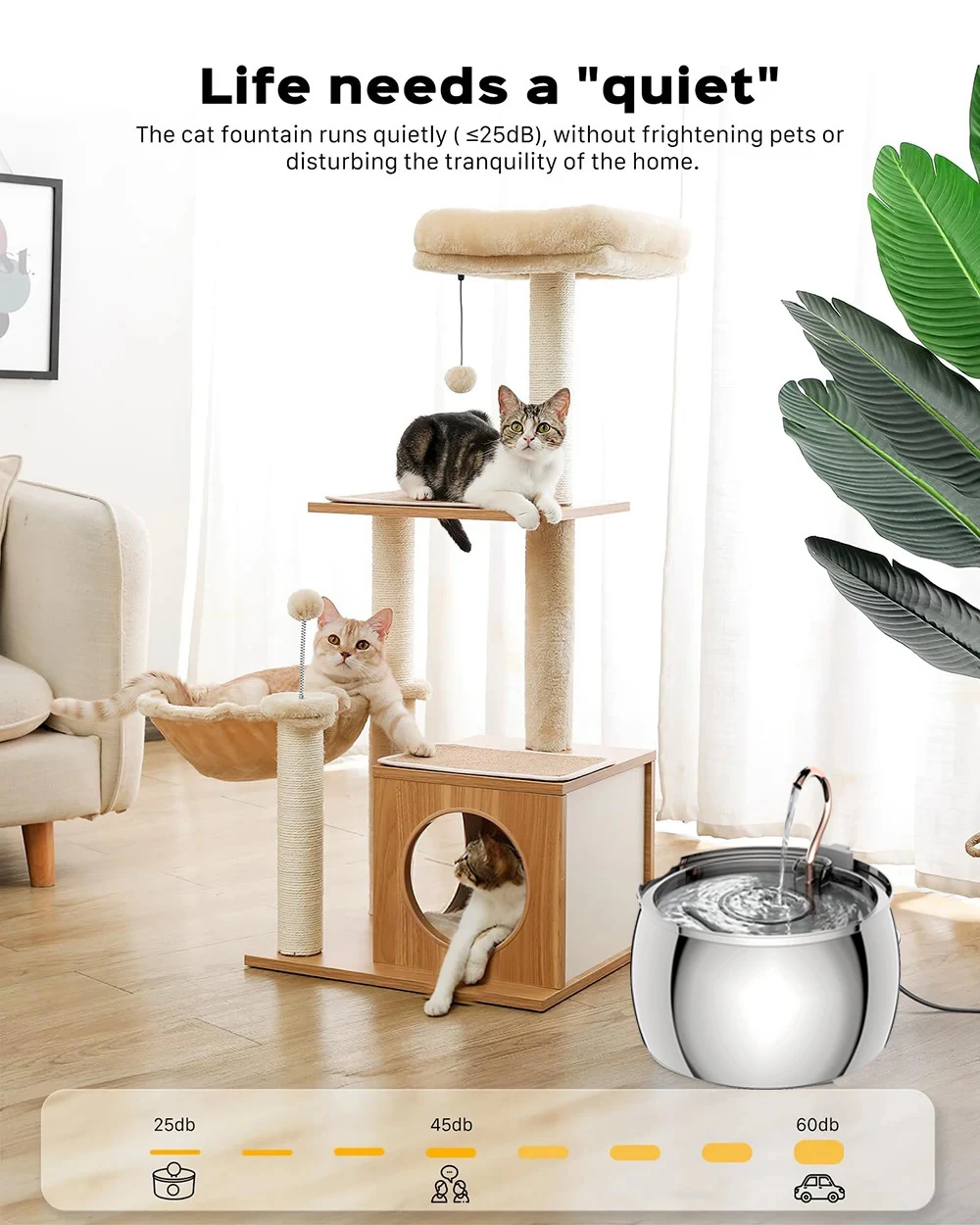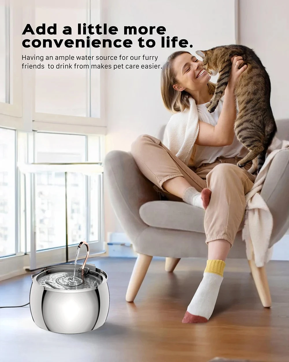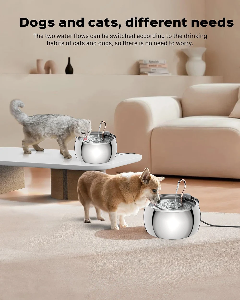 Nuevo comedero de 4L para gatos, bebedero de acero inoxidable para mascotas con ventana, alimentador de agua automático silencioso para perros y gatos, sin enchufe