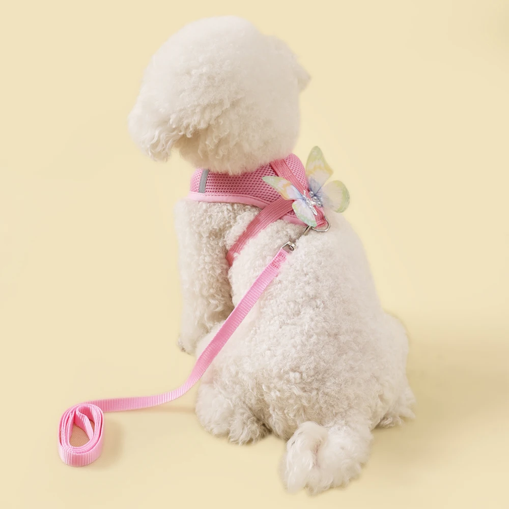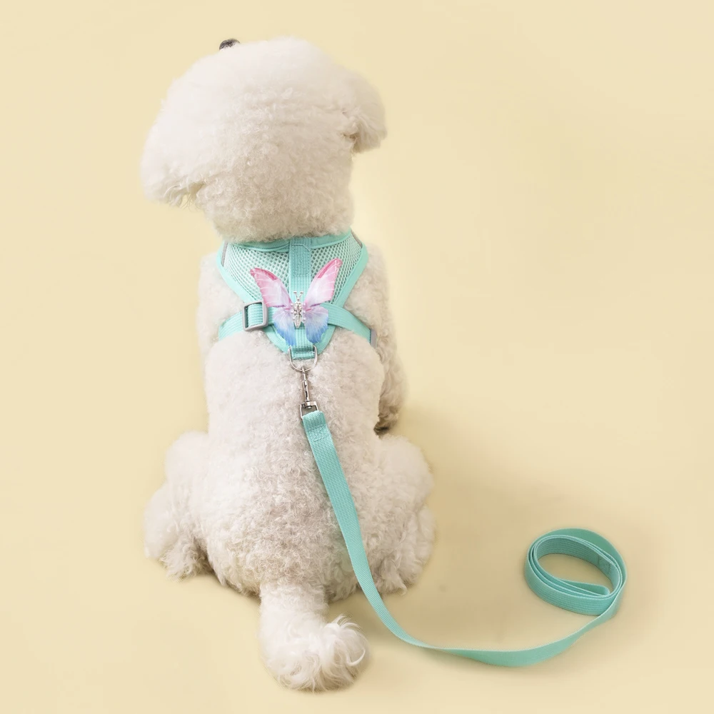 Nuevo conjunto de arnés transpirable para gatos, conjunto de arnés para perros pequeños y mariposas, chaleco de pecho para caminar al aire libre para cachorros, accesorios de correa
