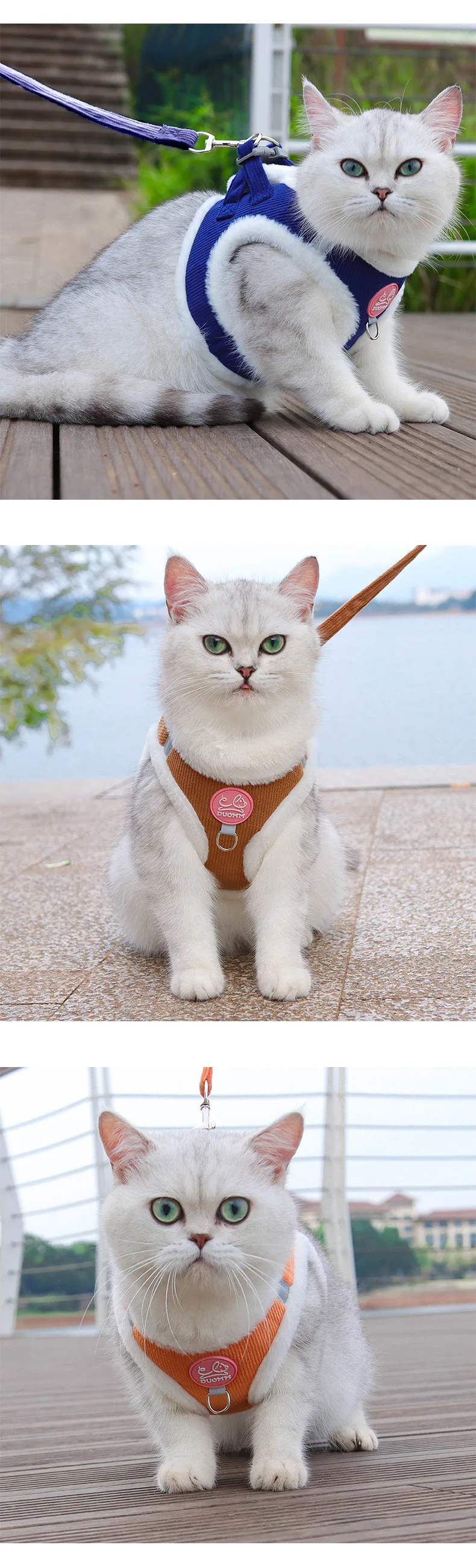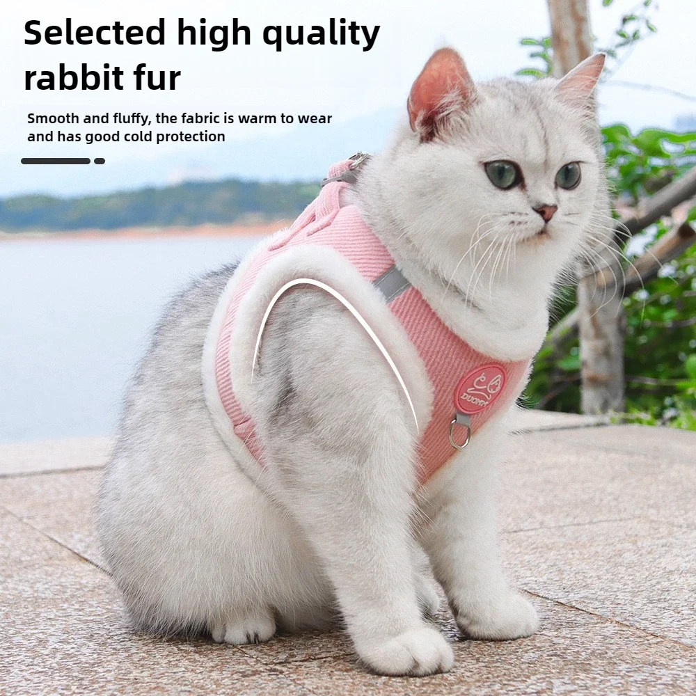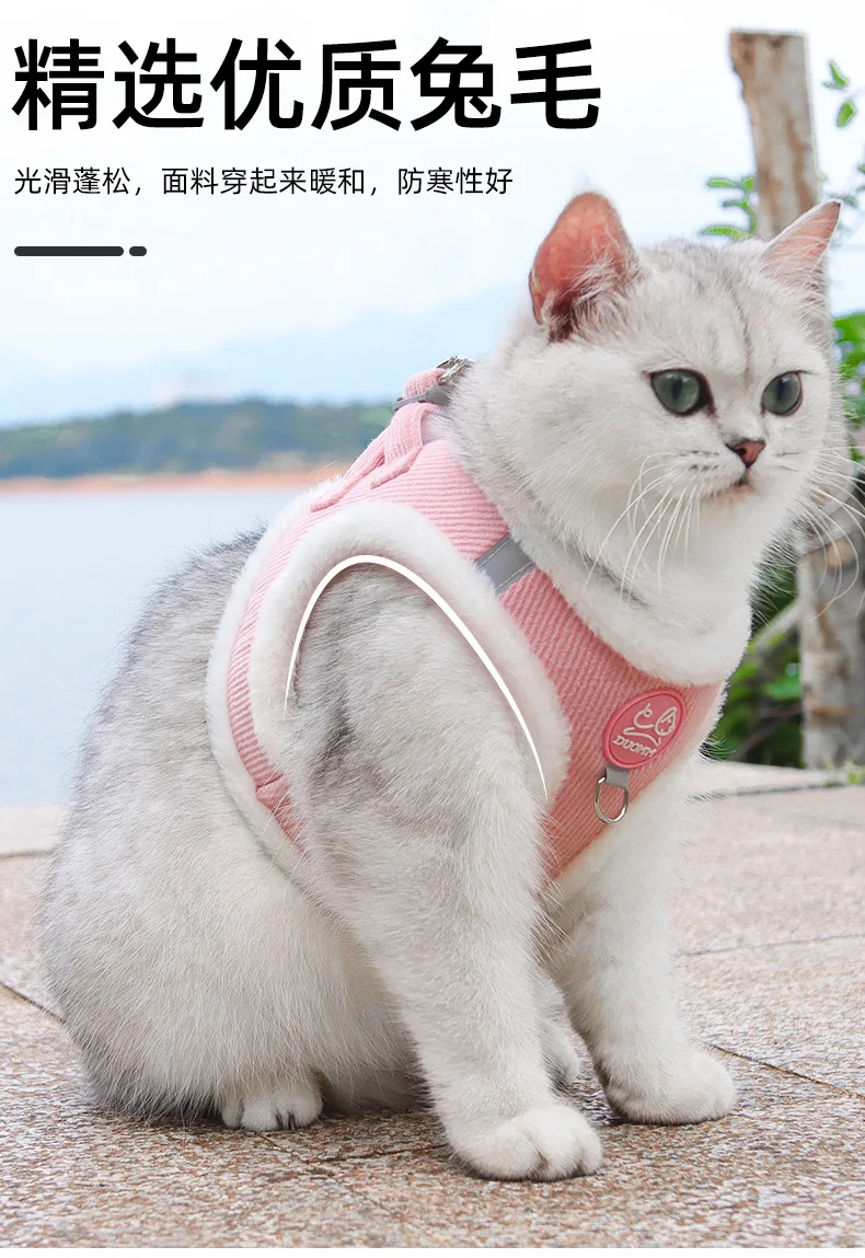 Nuevo Correa para gatos de otoño e invierno para mascotas, cómoda correa para el pecho de felpa, cuerda para perros pequeños, correa reflectante para perros