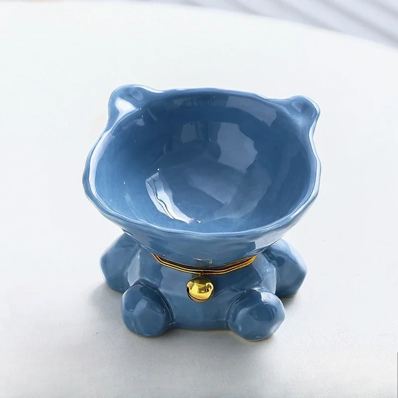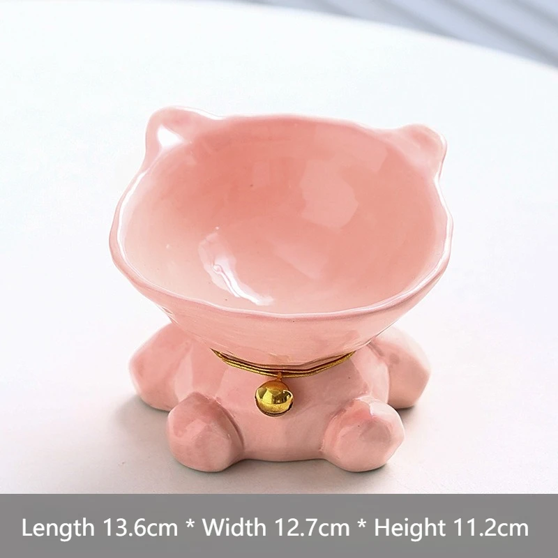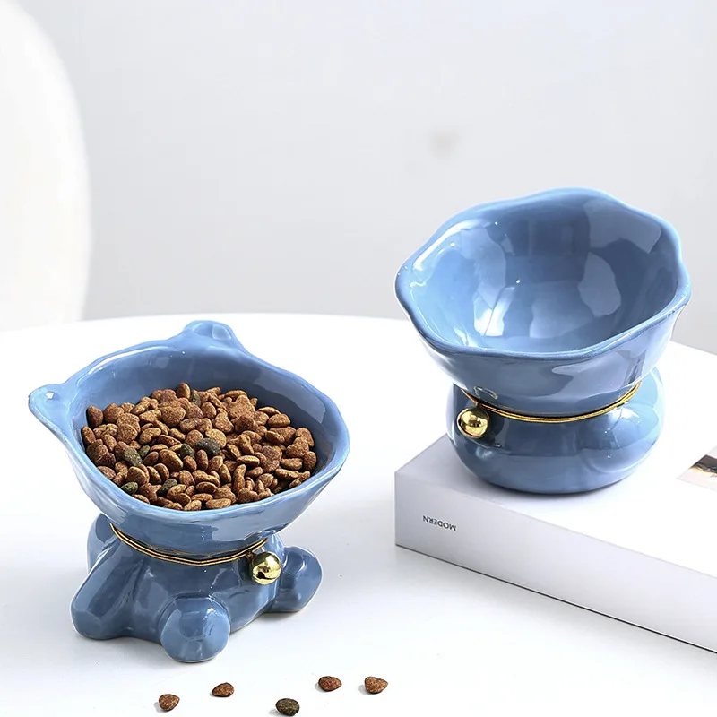 Nuevo Cuenco de cerámica para gatos, cuenco para mascotas de gran diámetro, boca Diagonal, protección del cuello, comida para gatos, pie alto, cerámica de animales de dibujos animados