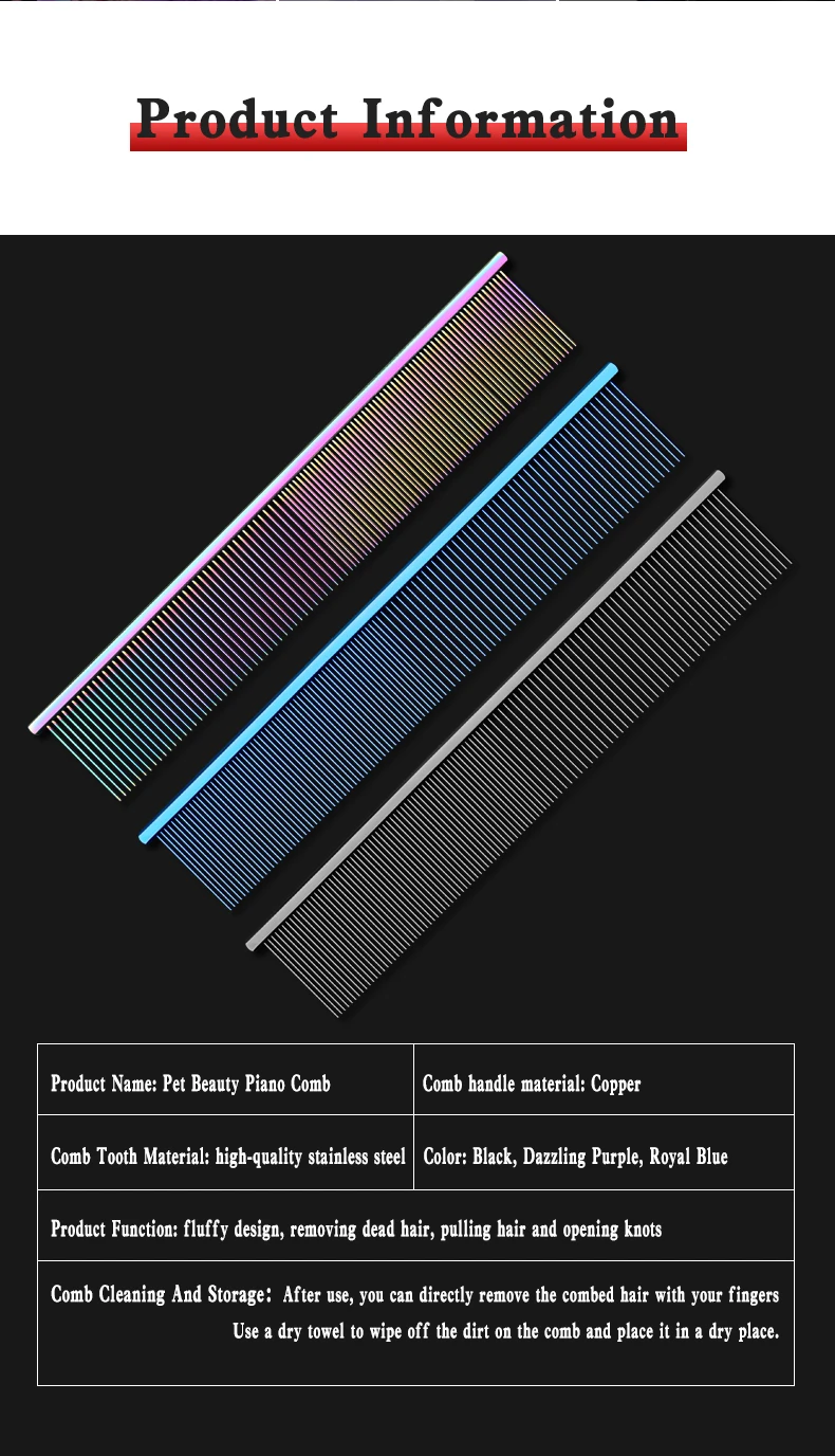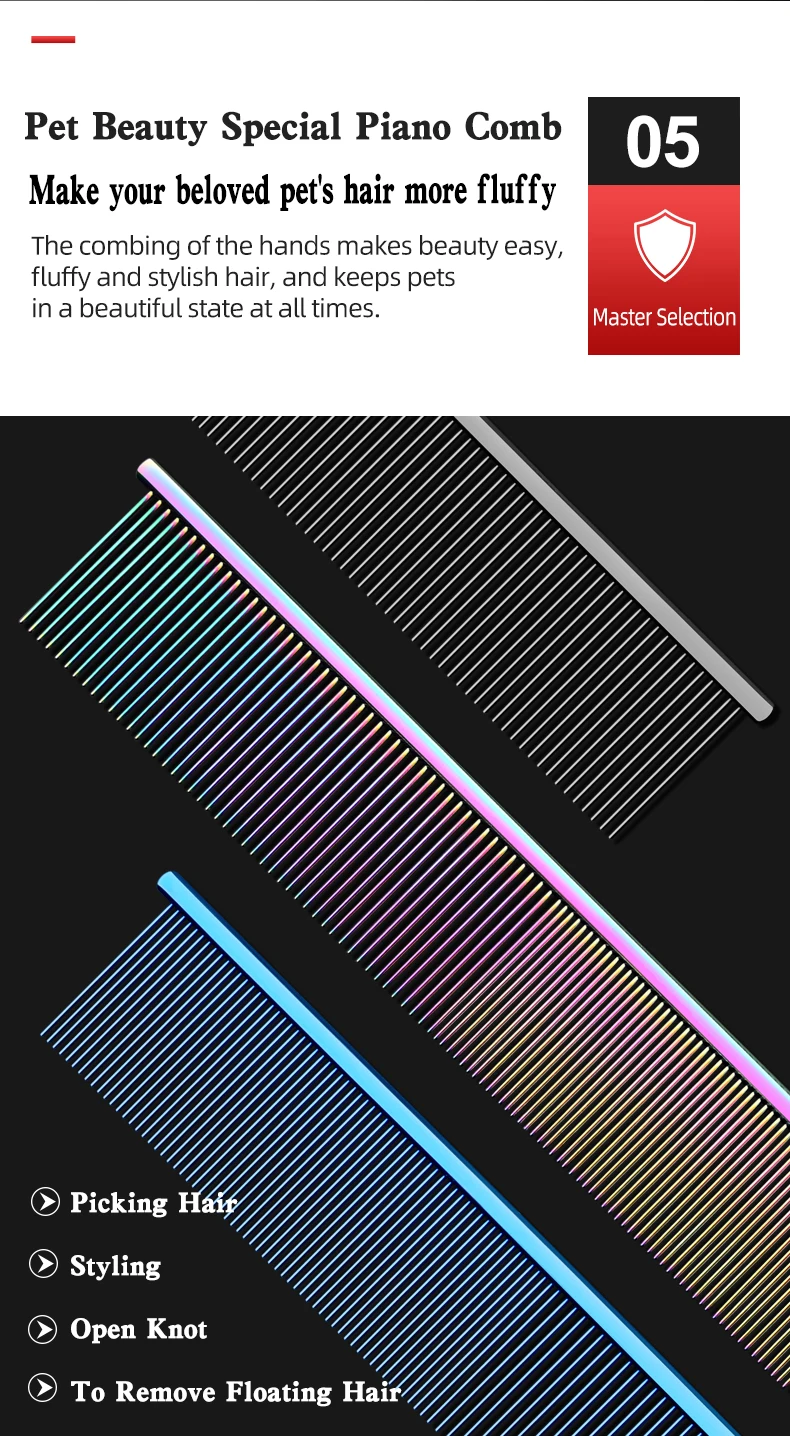 Nuevo estilo, peine de piano para el cuidado de mascotas, competencia especial de peluche, caniche, pelo abierto, peine de nudo, selección de pelo de perro, peine de línea recta