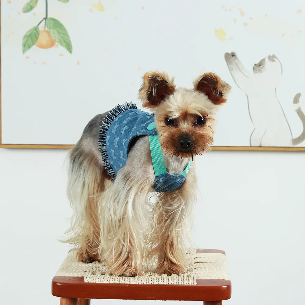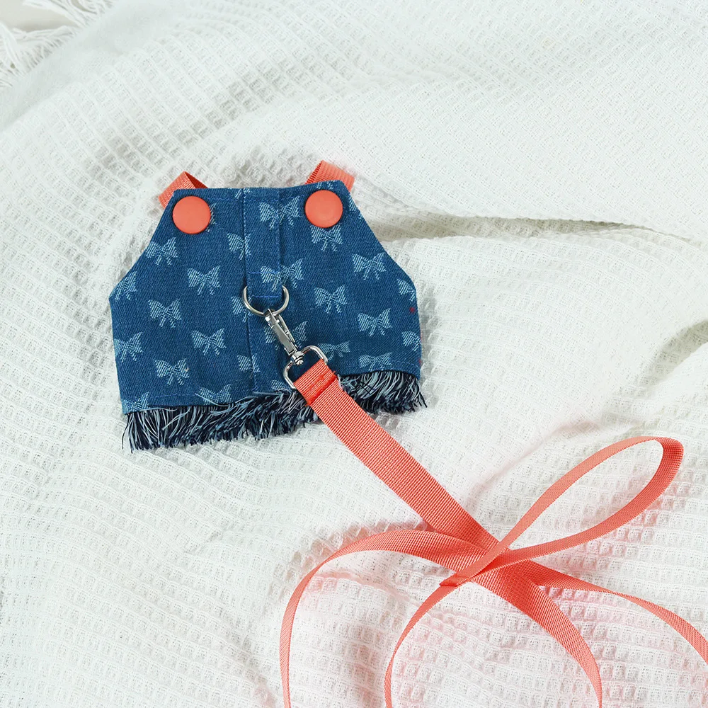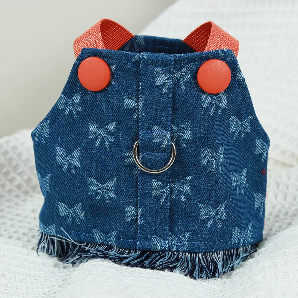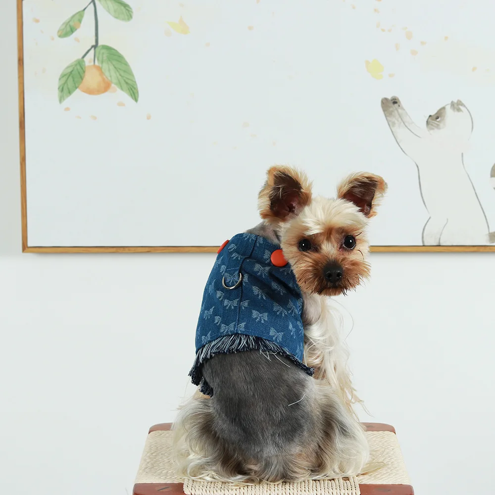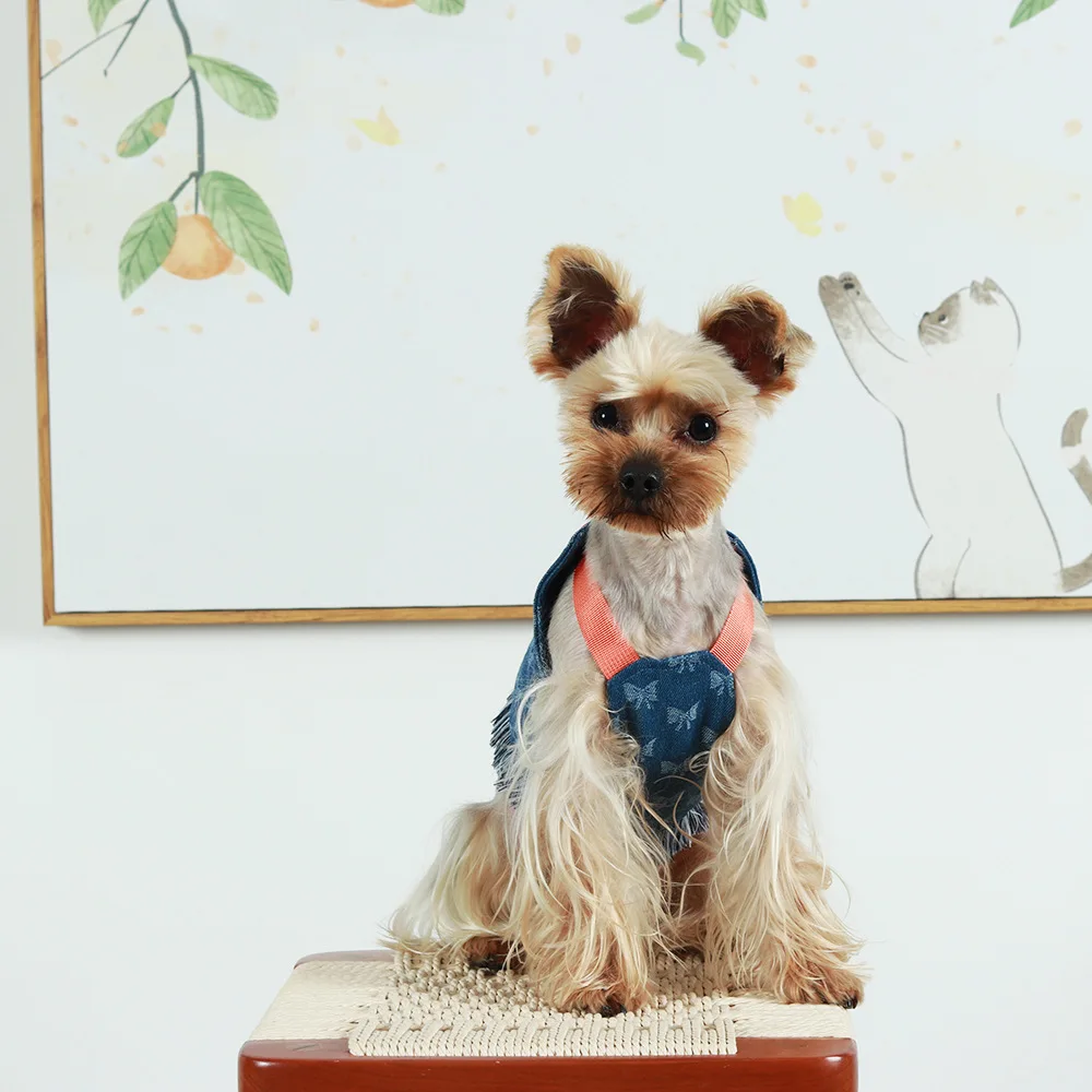Nuevo Juego de arnés y correa para perros pequeños, chaleco vaquero lavado oscuro para cachorros, arnés con borlas, pantalones vaqueros para mascotas, arnés de mariposa