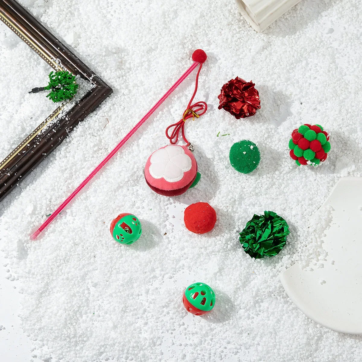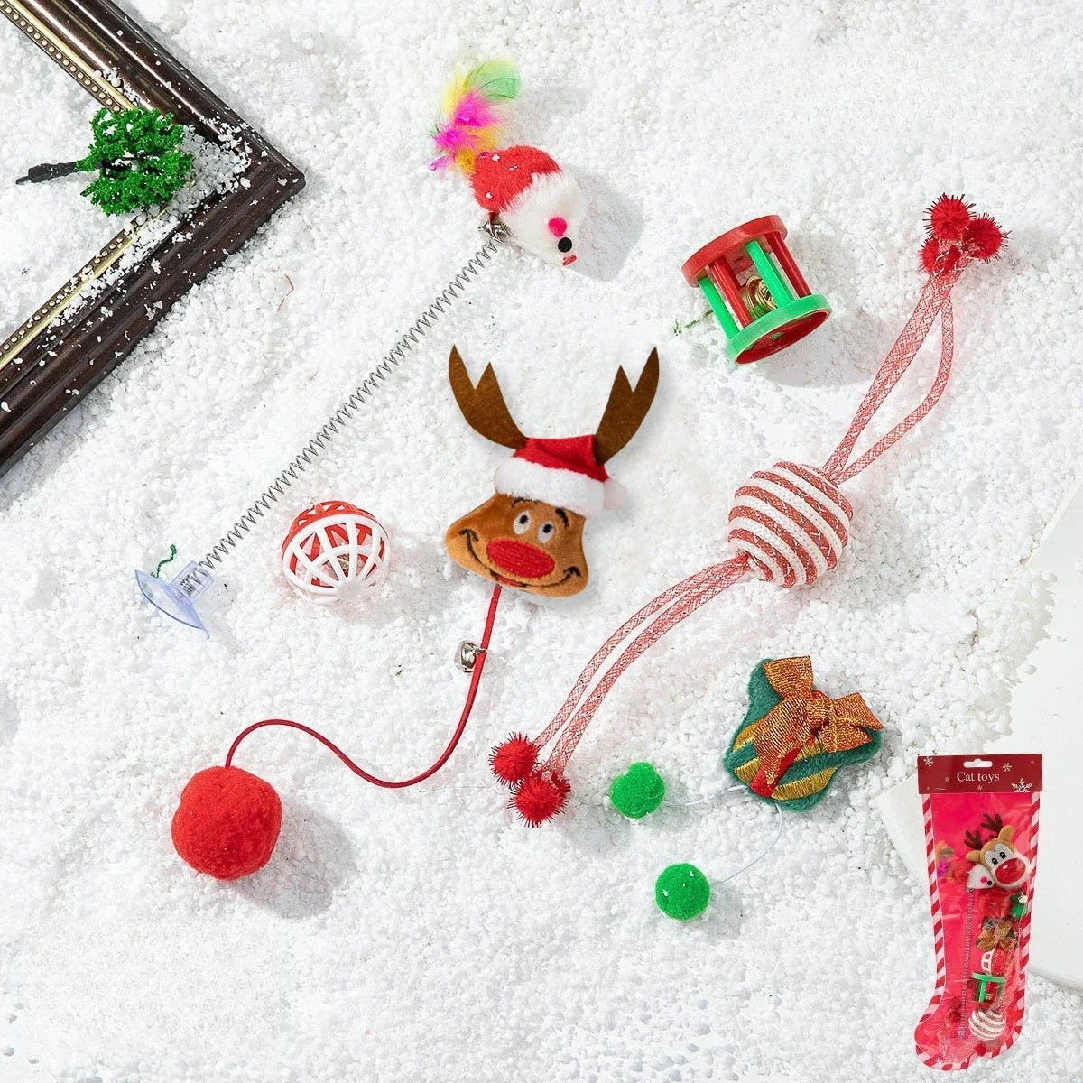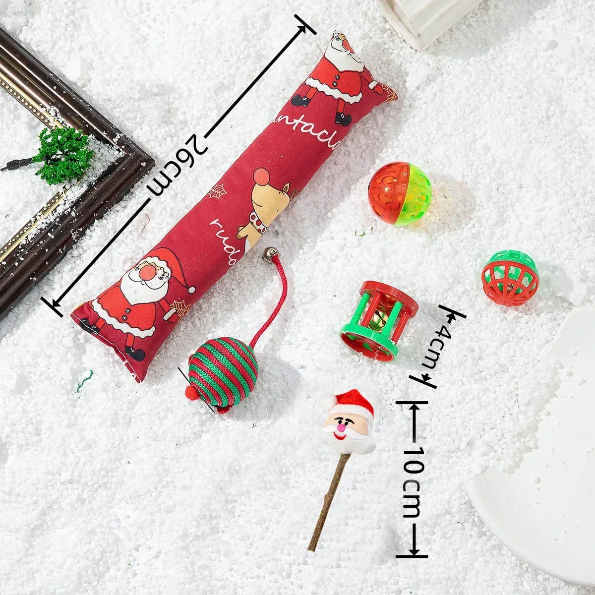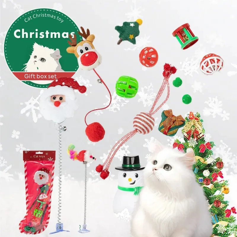 Nuevo juego de juguetes navideños para gatos para mascotas, caja de regalo interactiva con combinación de campanas, calcetín navideño y palo de juguete con diseño de alces adecuado
