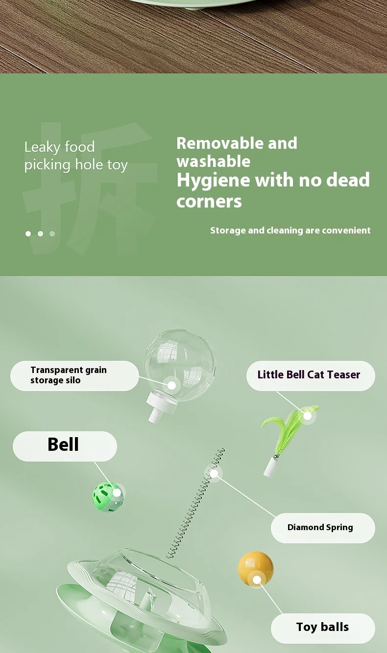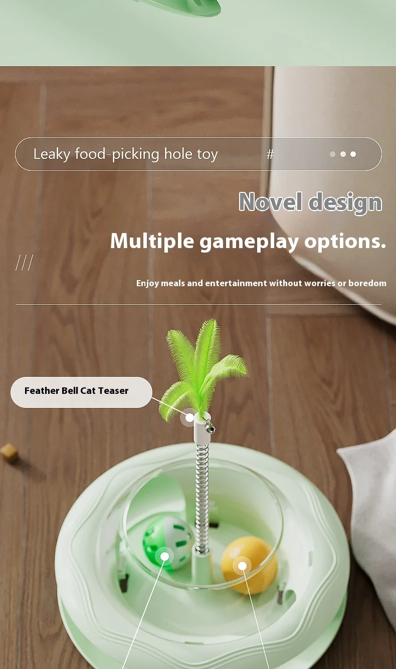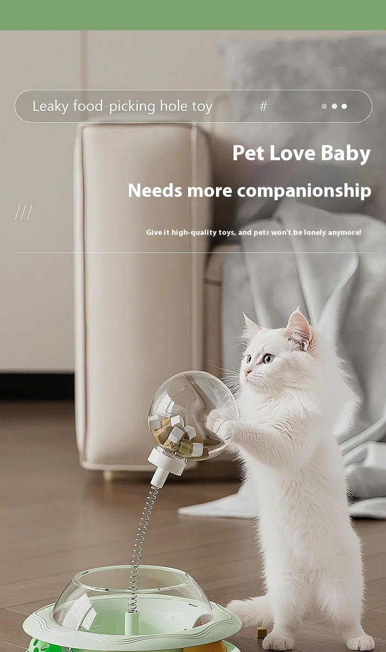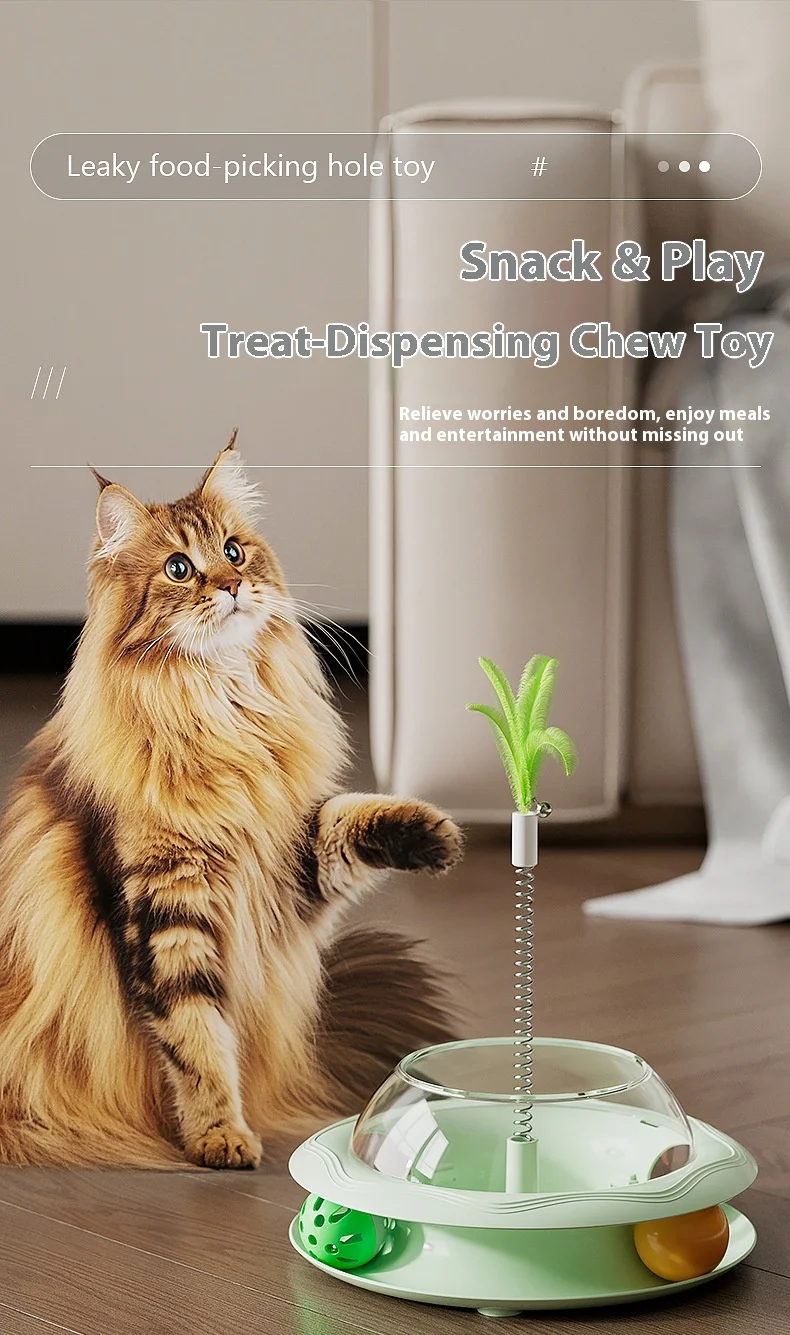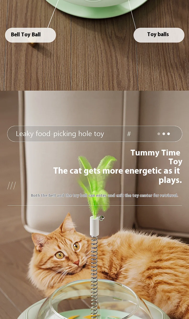 Nuevo juguete dispensador de golosinas para gatos con bola giratoria, alimentador de rompecabezas de juego automático, rompecabezas de plumas reemplazable, alivio del aburrimiento