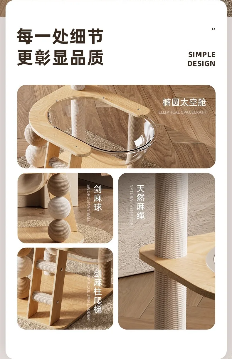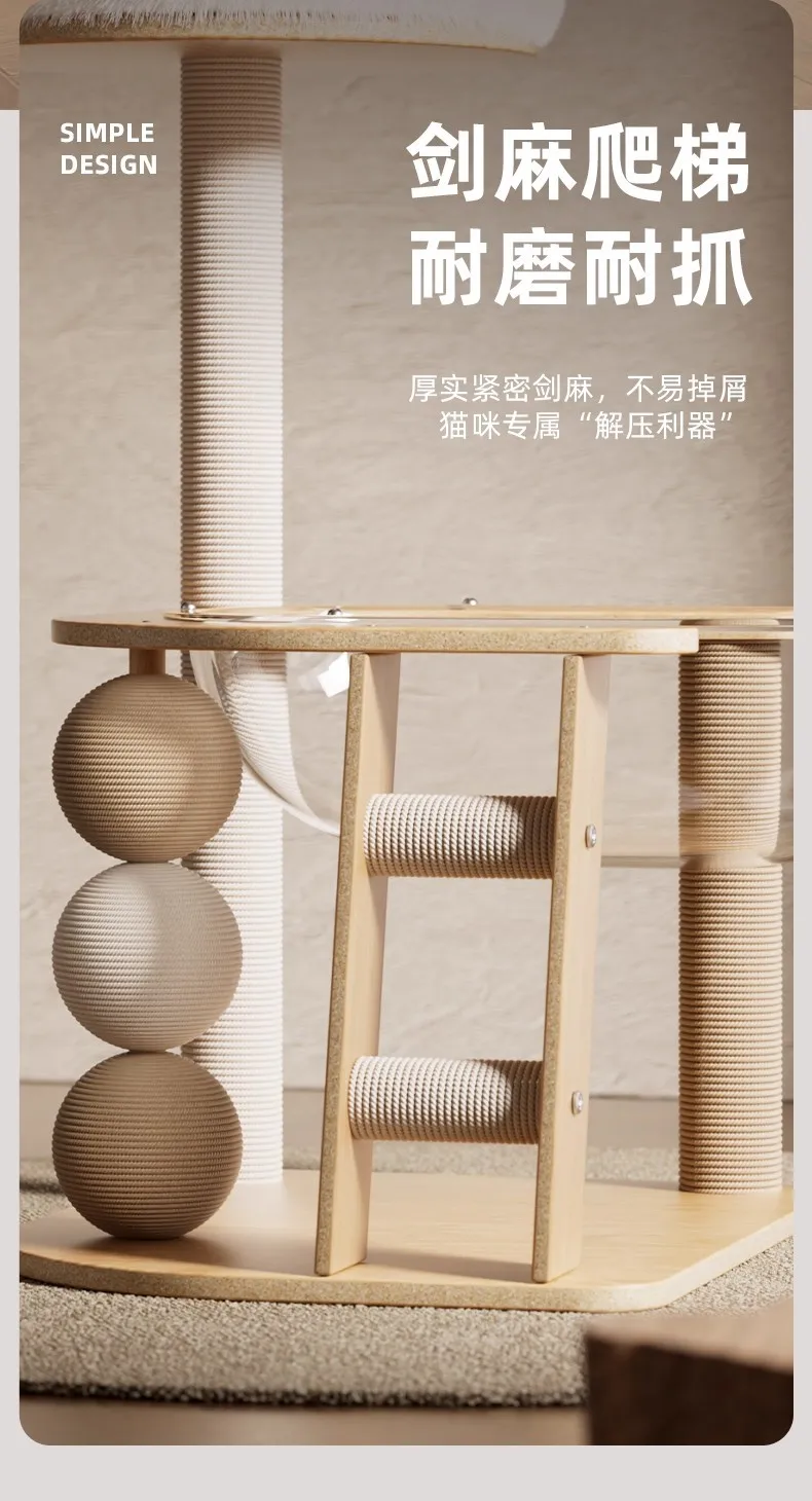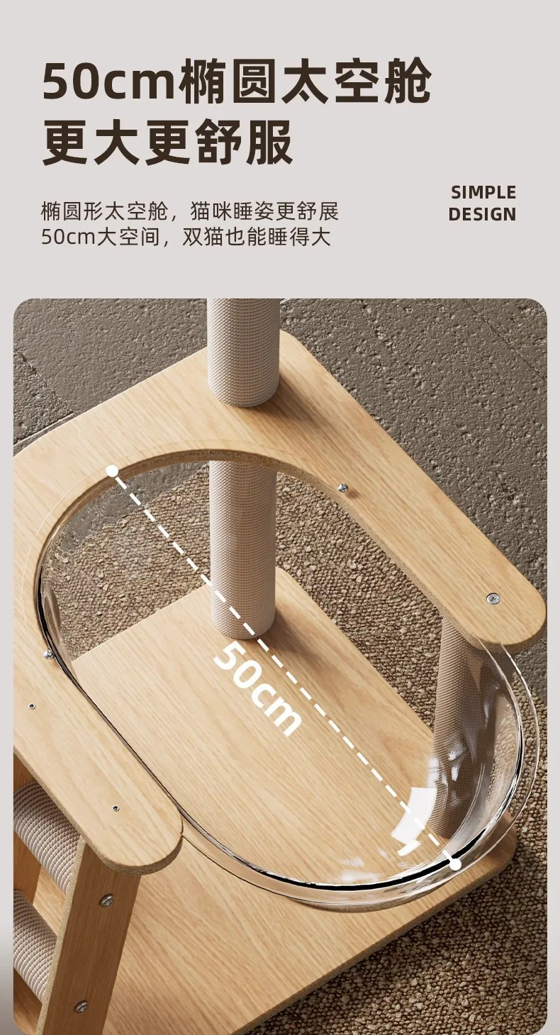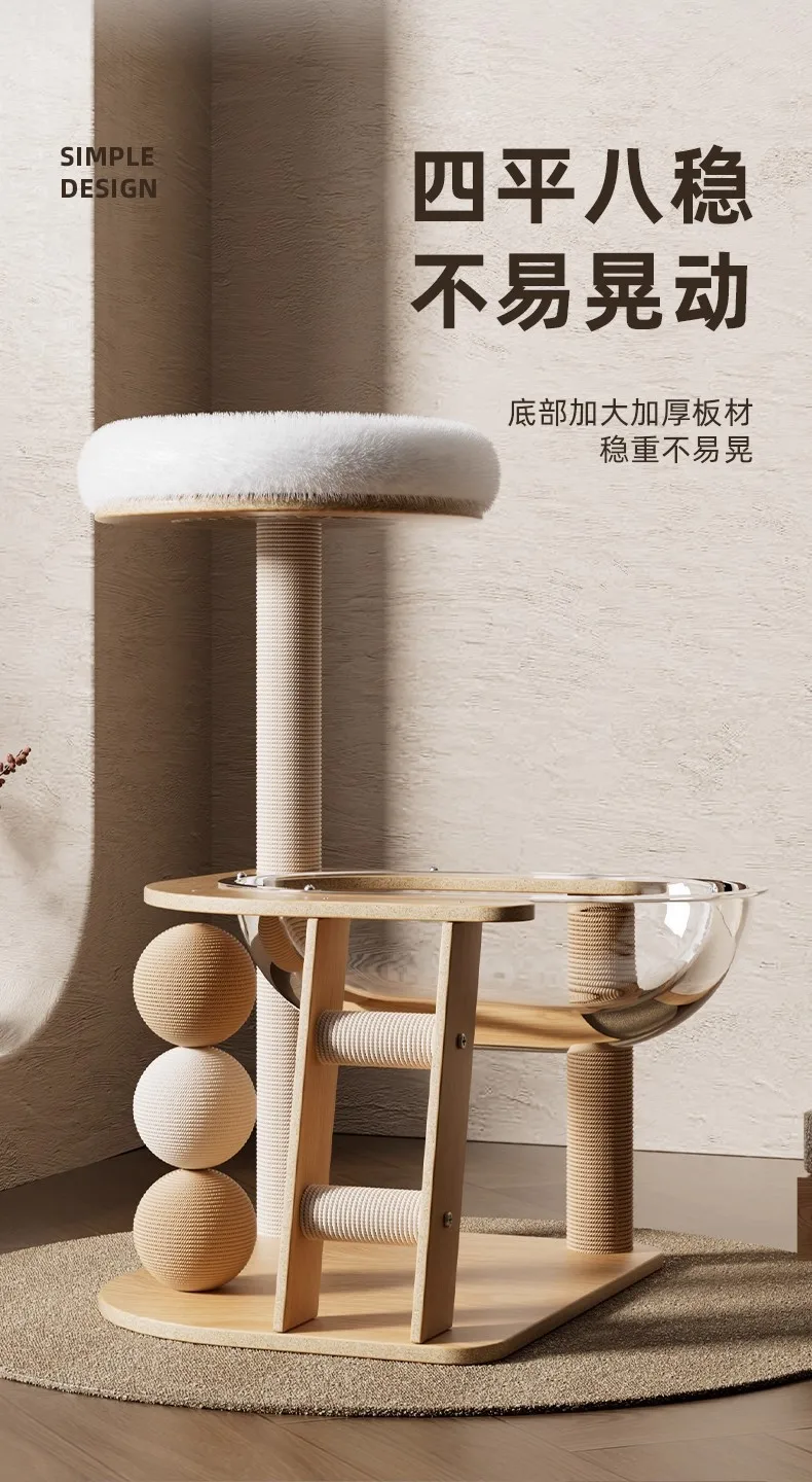 Nuevo juguete para mascotas, cápsula espacial transparente de MDF con casa para mascotas, apartamento para gatos, columna rascadora de Sisal, marco de escalada para gatos