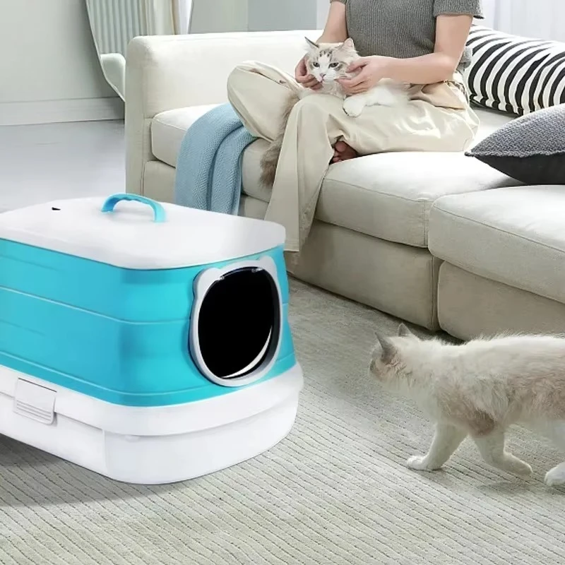 Nuevo lavabo grande totalmente cerrado para arena de gatos, suministros de limpieza plegables a prueba de salpicaduras para perros y gatos, productos para mascotas