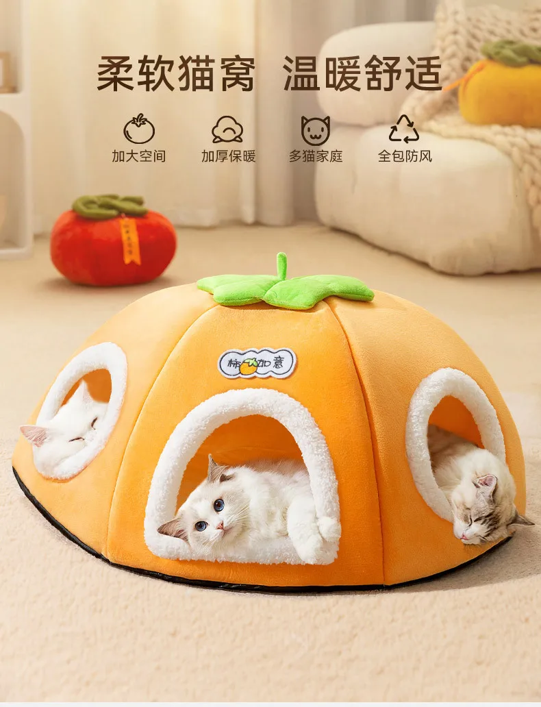 Nuevo Nido para gatos caqui Ruyi, multimascotas, cálido, grueso, doble agujero, túnel para gatos, jaula rodante, nido cerrado para mascotas