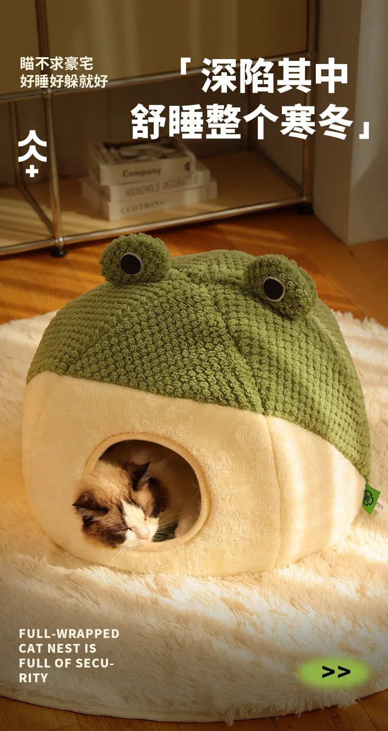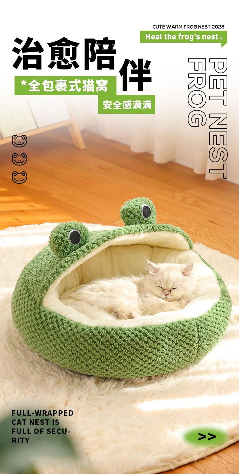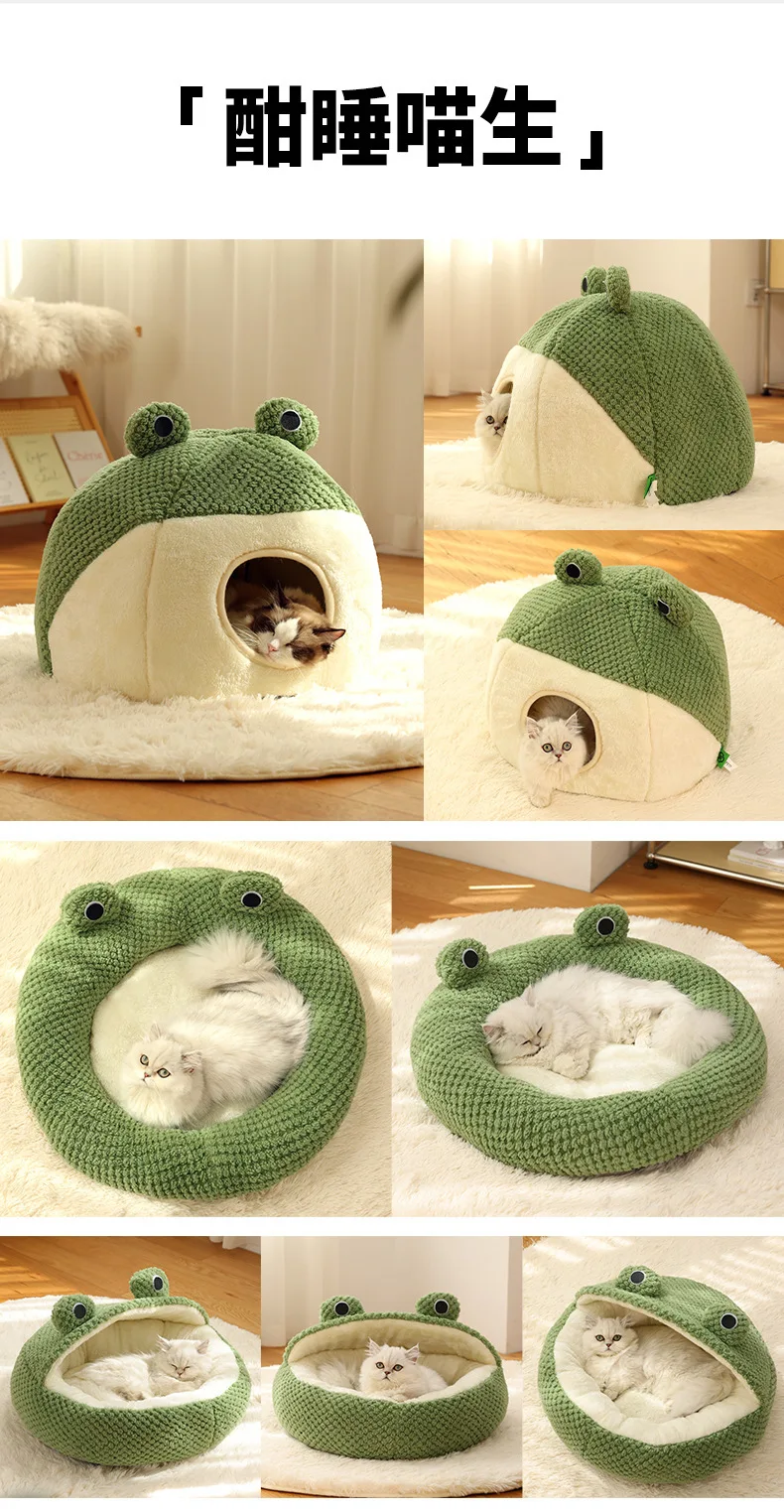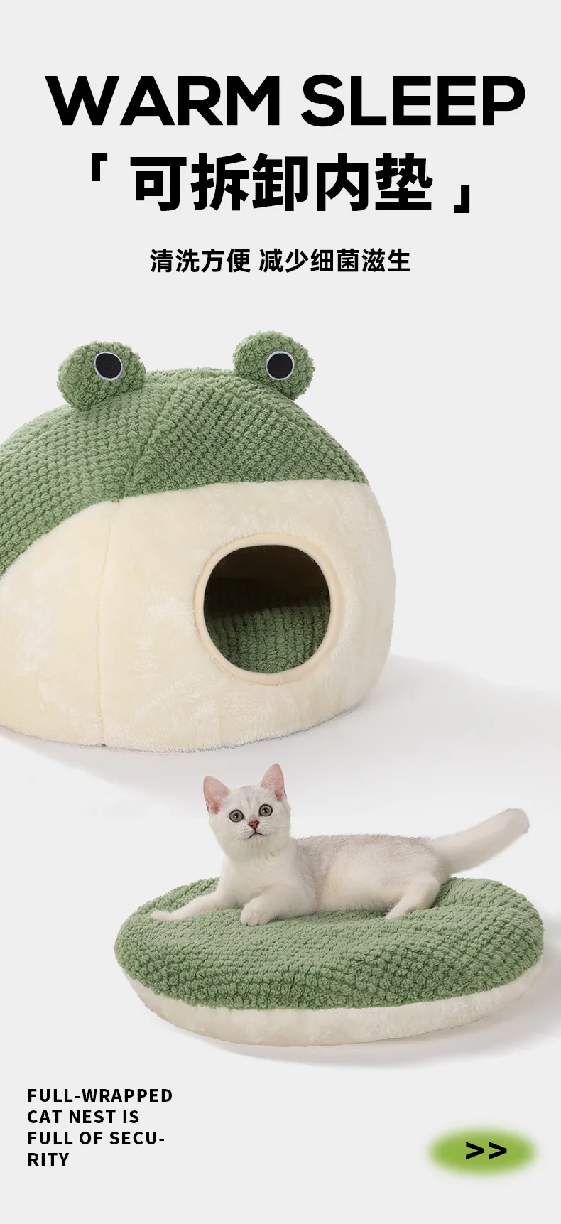 Nuevo Nido para gatos, perrera cálida de invierno, nido Universal para gatos para las cuatro estaciones, casa para perros, productos para mascotas con forma de rana de dibujos animados