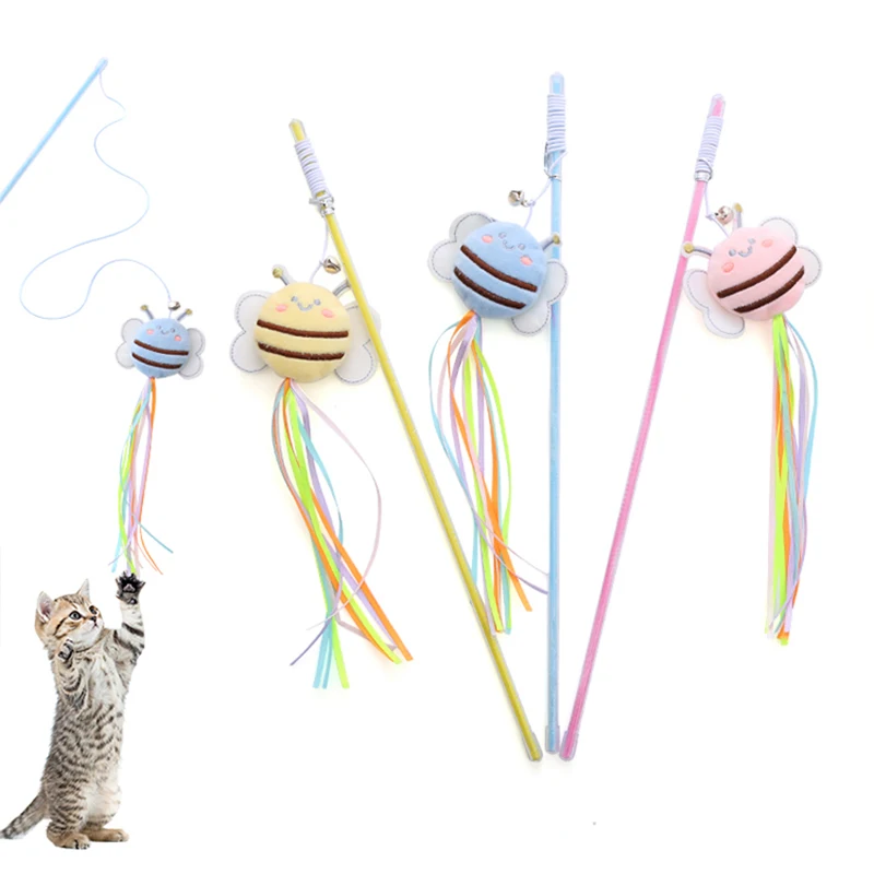 Nuevo Palo de peluche con forma de abeja para provocar gatos, varilla de plástico fresca de color con flecos exquisitos
