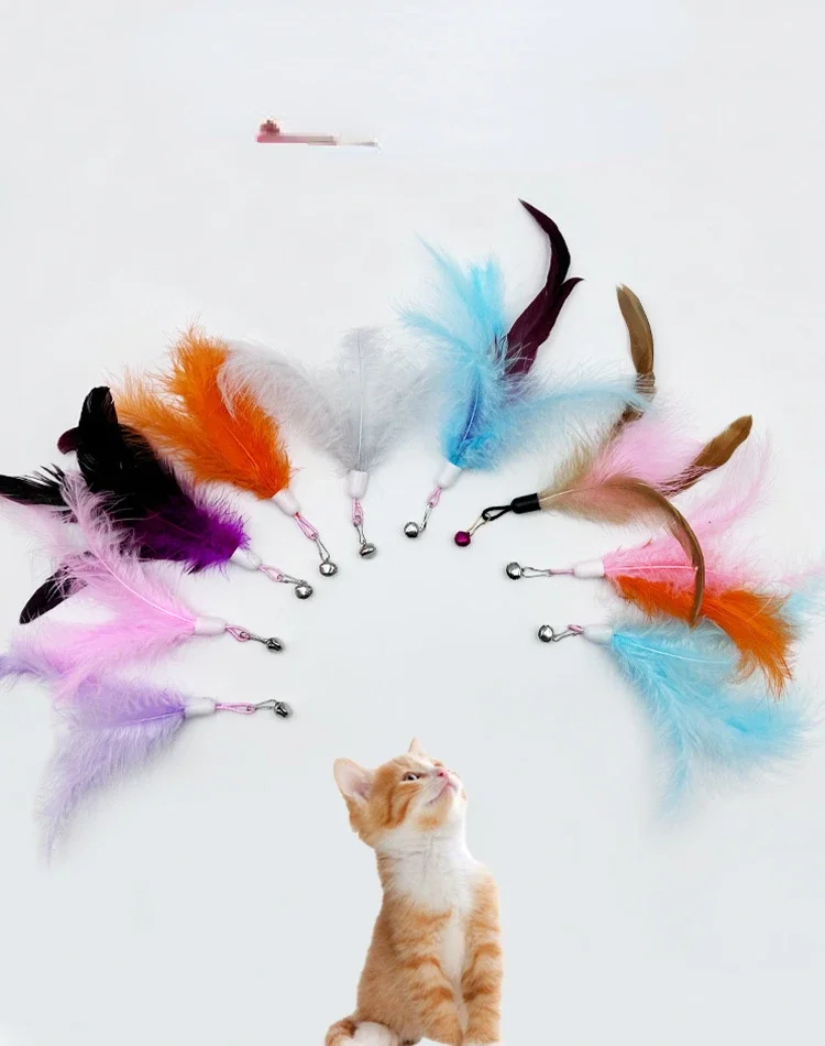 Nuevo palo de peluche para mascotas, campana de plumas, cabezal de repuesto, juguete de peluche para mascotas, juguete interactivo para aliviar el gato, juguetes para gatos