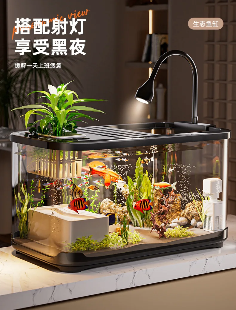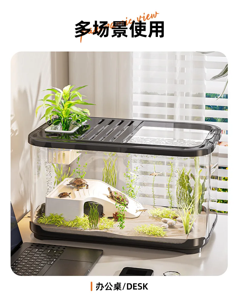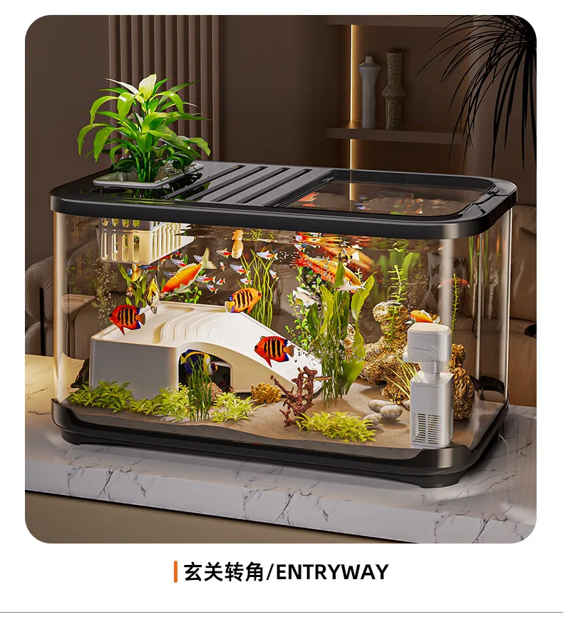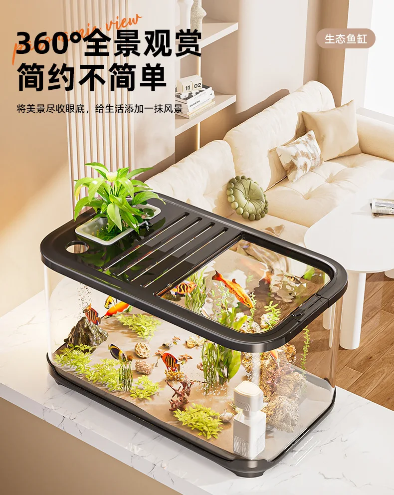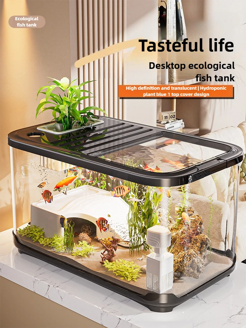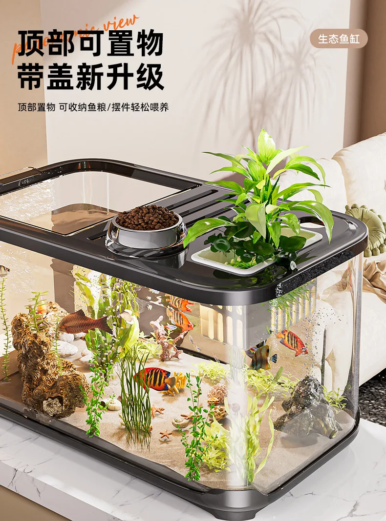 Nuevo pecera con tapa para sala de estar, paisajismo del hogar, tanque ecológico transparente, tanque de tortuga de escritorio, acuario de plástico grande