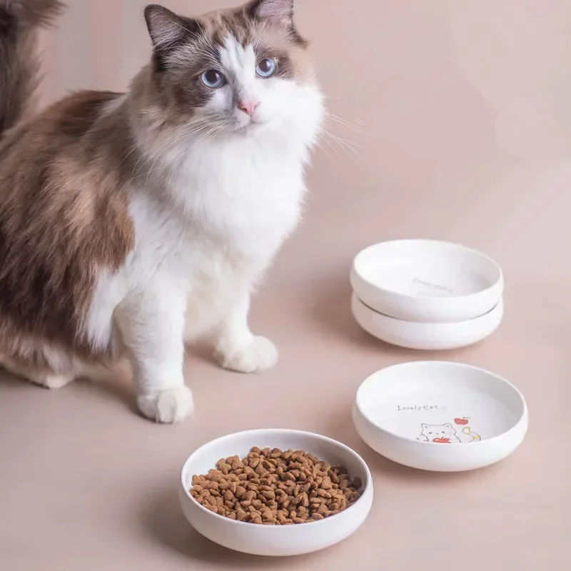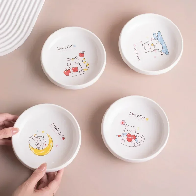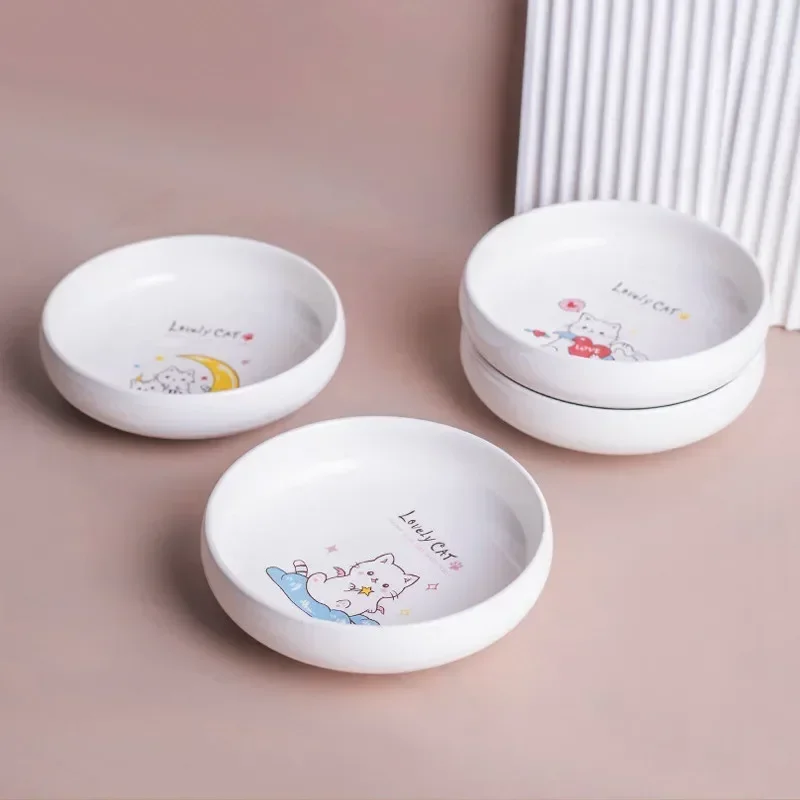 Nuevo plato de cerámica creativo para profundización, cuenco para mascotas, accesorios para perros y gatos, alimentador antideslizante de dibujos animados, suministros para perros