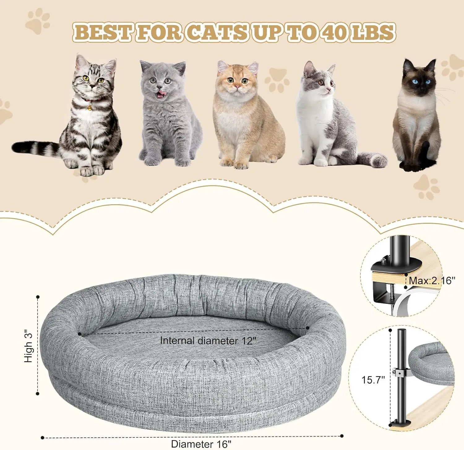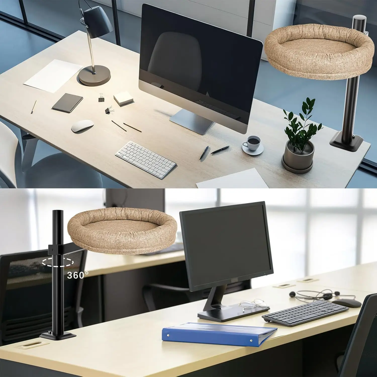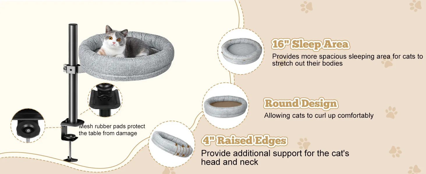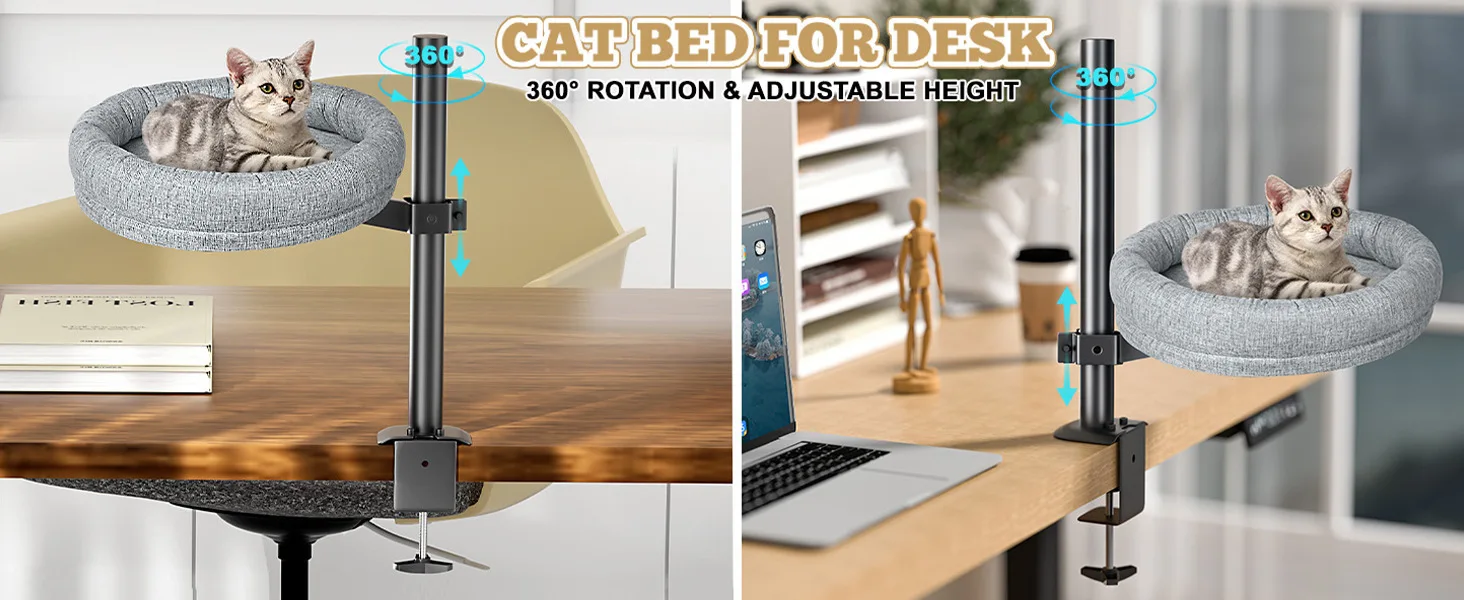 Nuevo producto Escritorio Nido para gatos Cama para mascotas 360 ° Hamaca giratoria de altura ajustable para gatos, cama para mascotas, saco de dormir