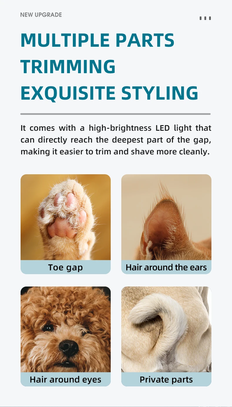Nuevo Recortador de garras para perros, recortador de pelo para mascotas totalmente impermeable con luz LED, recortador para perros con pantalla LED