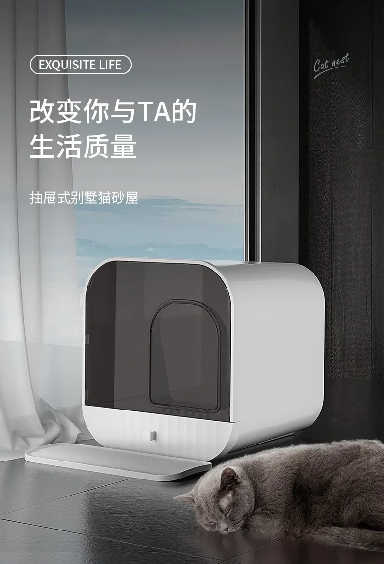 Nuevo tipo cajonera, lavabo para arena para gatos, totalmente cerrado, a prueba de salpicaduras, suministros de limpieza de inodoro para mascotas, tipo Villa, nido para mascotas con Litte para gatos