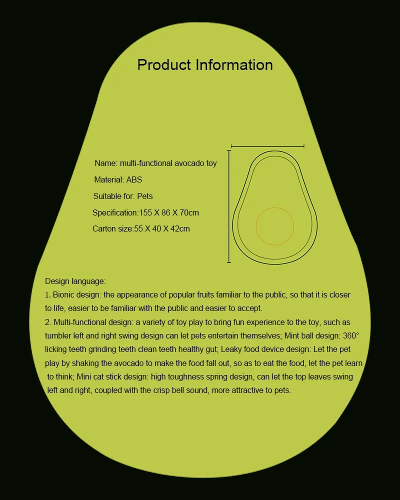 Múltiples funciones: el diseño de vaso oscilante permite que las mascotas se entretengan; Diseño de bola de menta: 360 ° Lamer los dientes, rechinar los dientes, limpiar los dientes, topa saludable; Diseño de dispositivo de comida con fugas: deje que la mascota juegue agitando el aguacate para que la comida se caiga, para comer la comida, deje que la mascota aprenda a pensar; Diseño de mini palo para gatos: diseño de resorte de alta dureza, puede permitir que las hojas superiores se balanceen hacia la izquierda y hacia la derecha, junto con el sonido nítido de la campana, más atractivo para las mascotas.