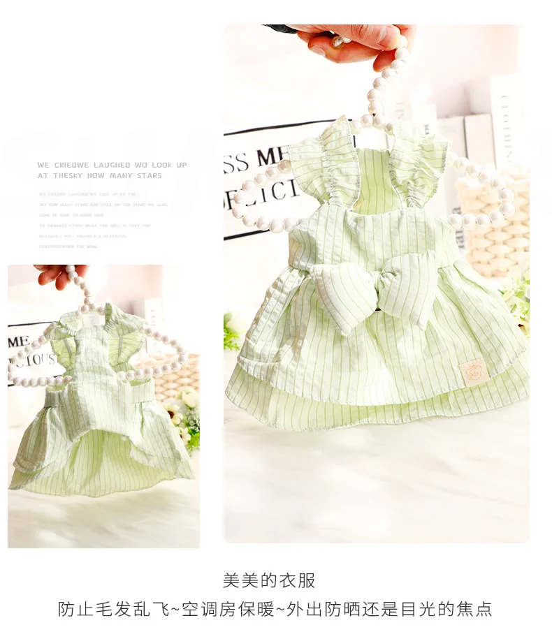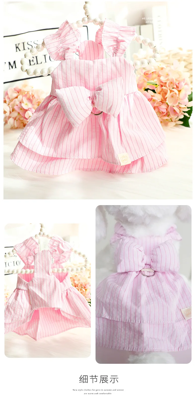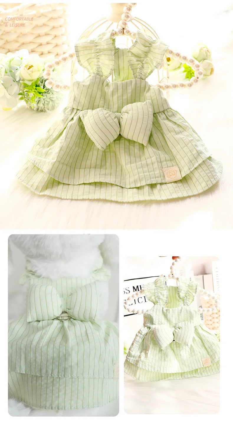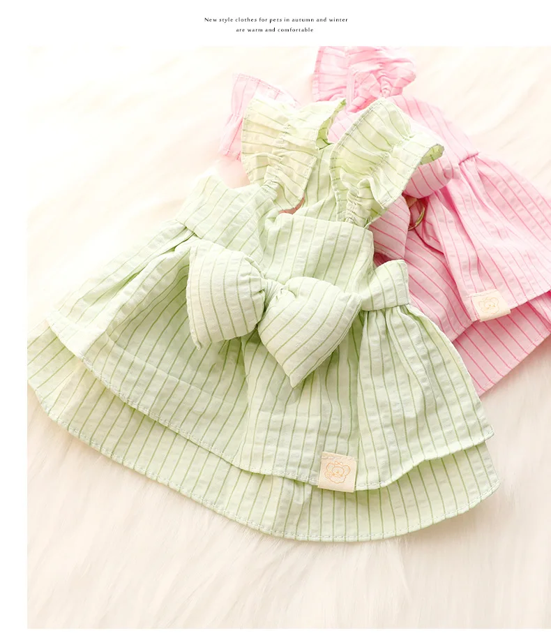 Nuevo vestido de perro de algodón puro de primavera y verano, diseño clásico a rayas con lazo encantador para Bichon, Schnauzer y Chihuahua