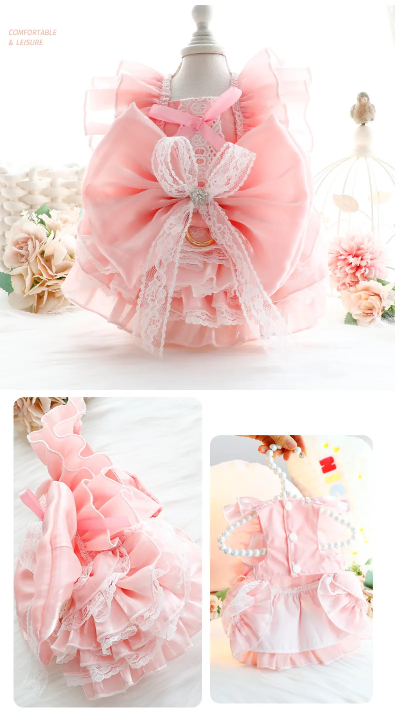 Nuevo vestido de princesa para perros con falda estilo Lolita con lazo para Chihuahua, Bichon, traje de peluche, vestido para perros pequeños
