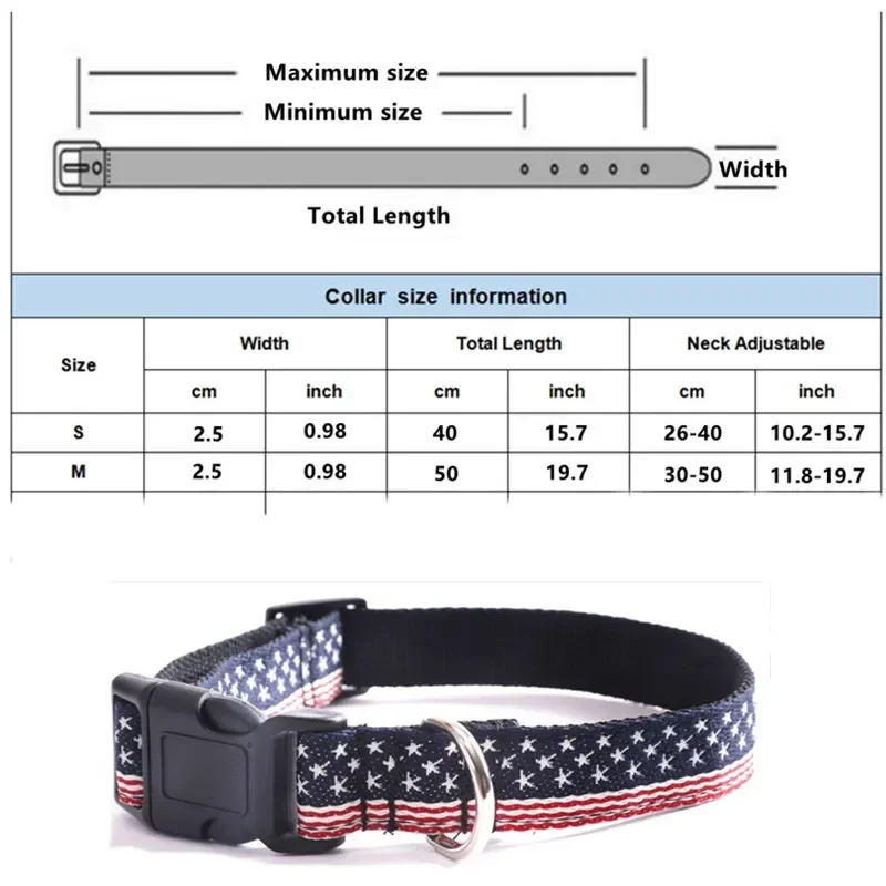 Nuevos accesorios para gatos, Collar de nailon para perro con estampado de bandera americana, Collar ajustable para mascotas para perros pequeños y medianos, suministros para Chihuahua