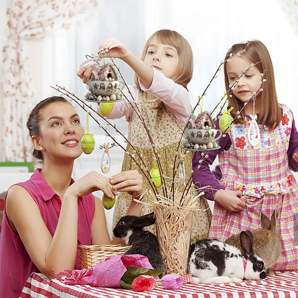 Agregue un poco de encanto adicional a su decoración de Pascua con estos adorables adornos para árboles de Pascua.Esta linda imagen de conejito y los cálidos diseños de casas de café crean una combinación perfecta de festividad y comodidad.Fabricados con materiales resistentes, estos adornos no se decoloran ni rompen fácilmente.Equipados con un gancho o cuerda, estos adornos son fáciles de suspender.