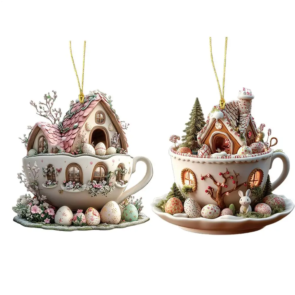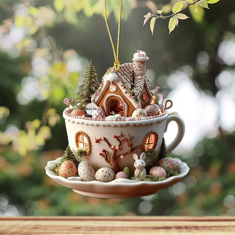 Puntos destacados:1. Cree un ambiente festivo: al incorporar un encantador diseño de conejito en un acogedor hogar con forma de taza de café, esta decoración de Pascua vintage agrega un toque cálido y divertido, creando una atmósfera animada perfecta para celebrar la temporada navideña.